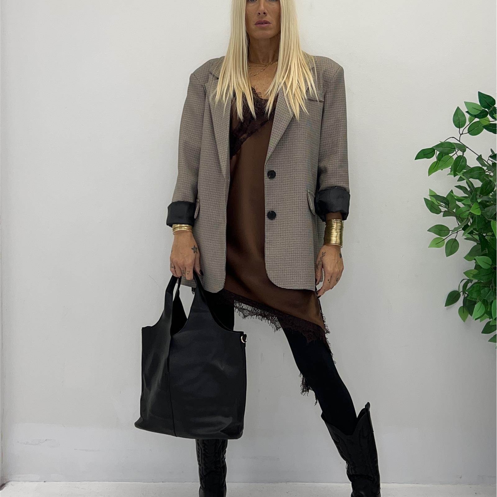 Giacca over, foderata con spallino imbottito con bottoni di chiusura