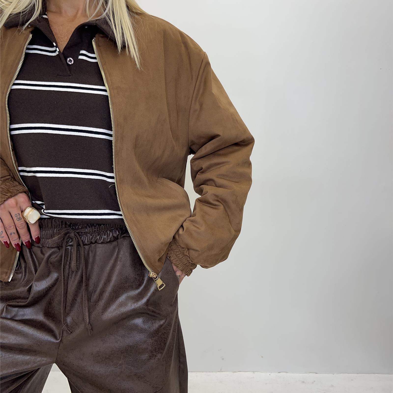 Giubbotto modello bomber imbottito all'interno, tasche laterali