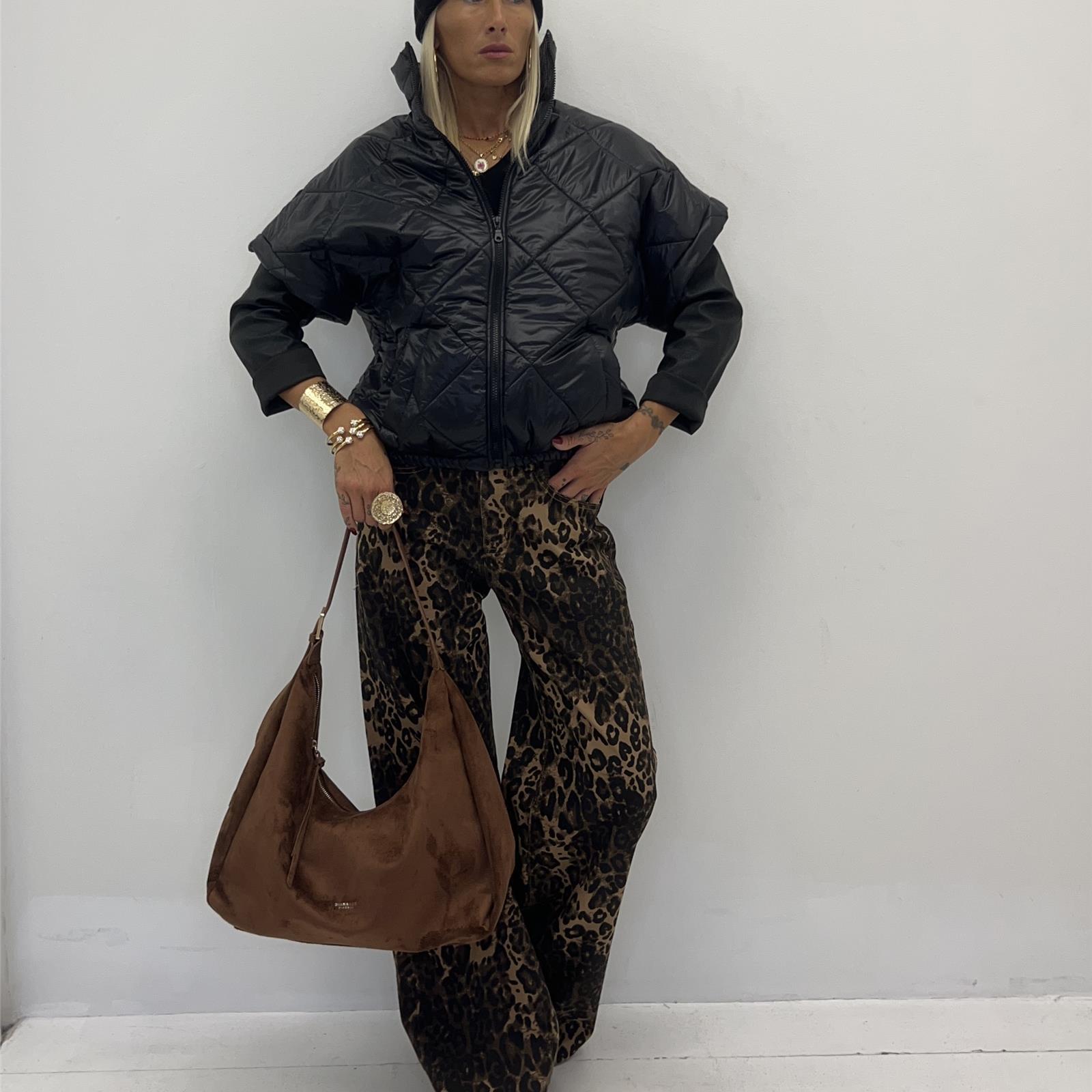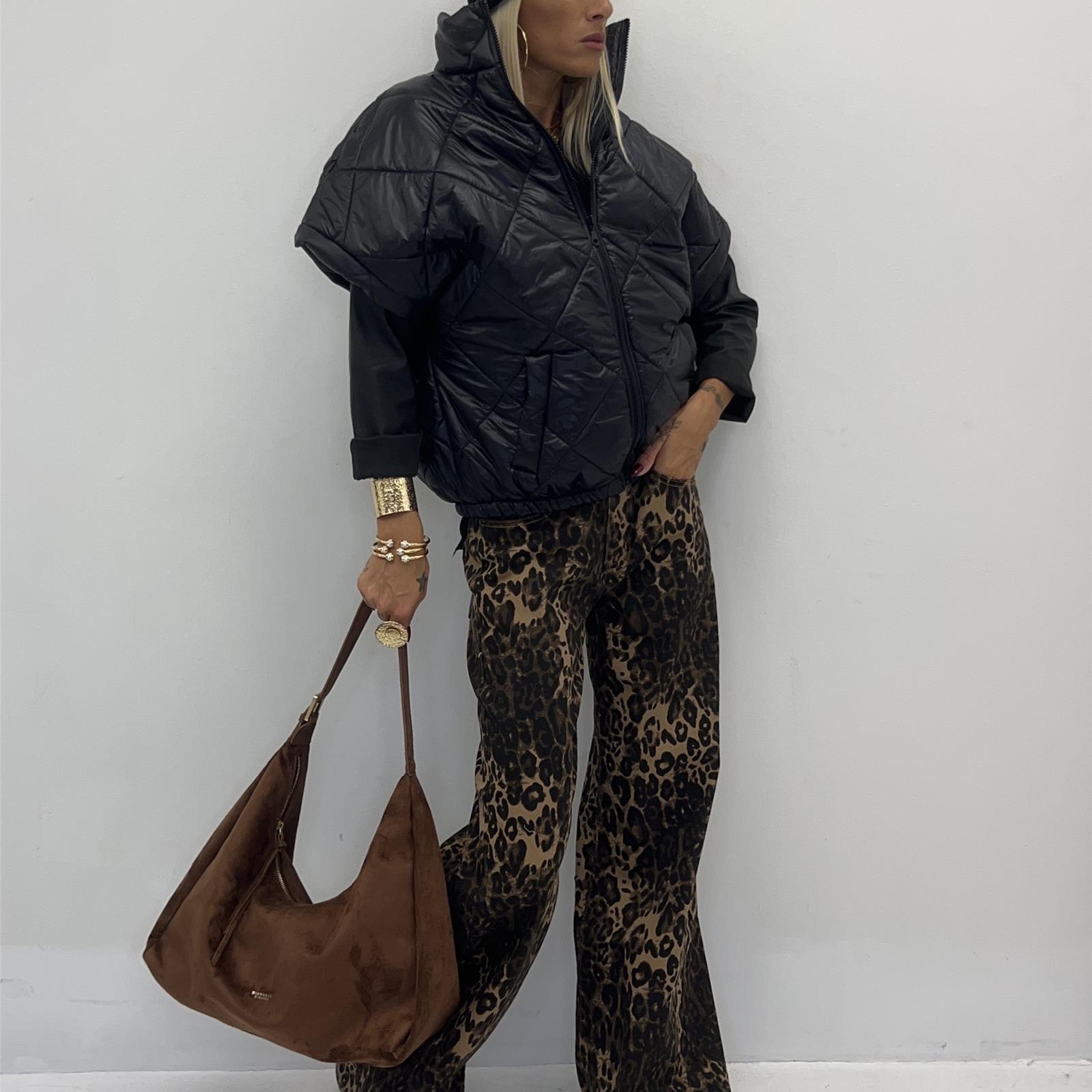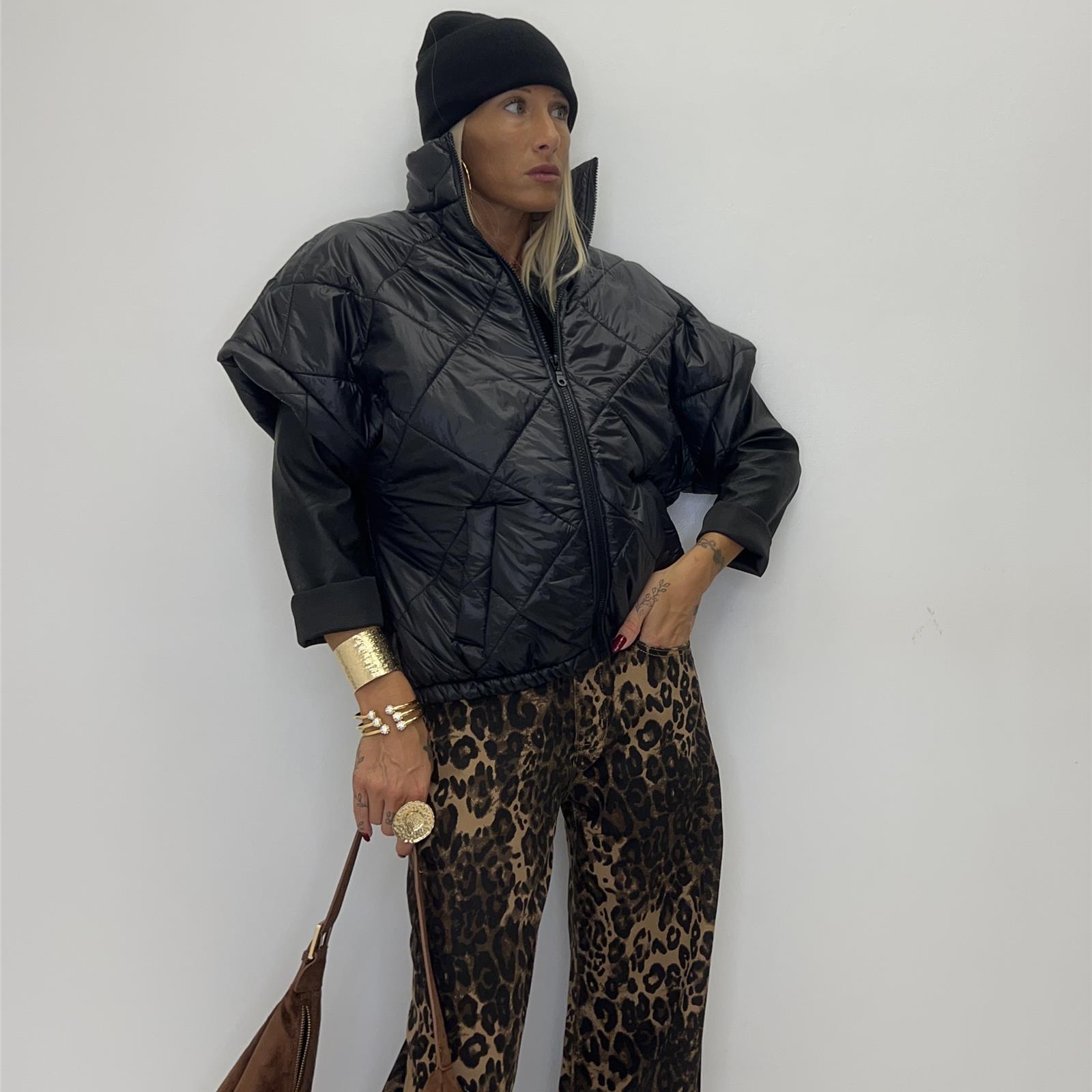 Gilet trapuntato con collo alto , zip frontale , apertura manica ampia , elastico sul fondo e tasche frontali