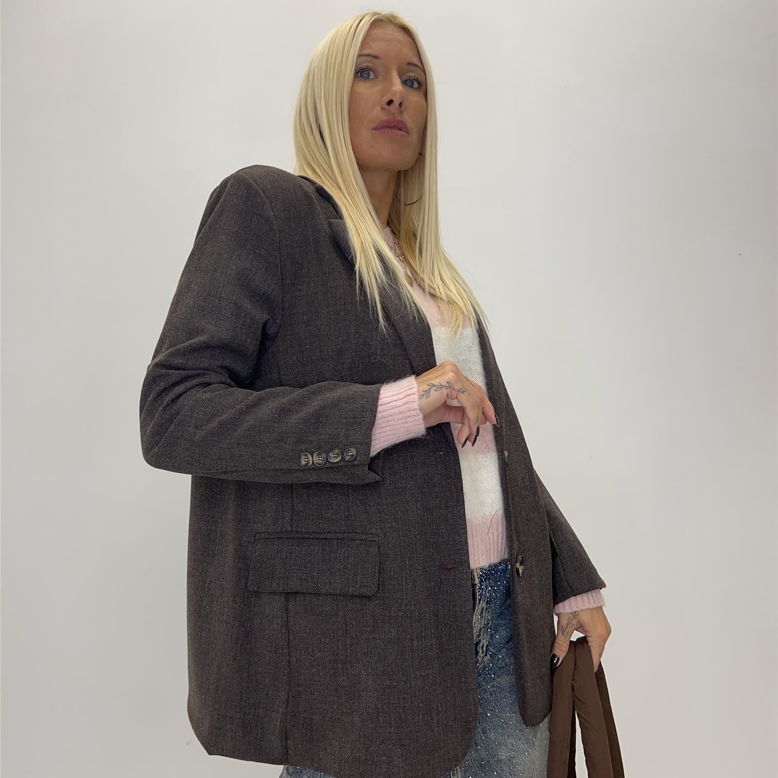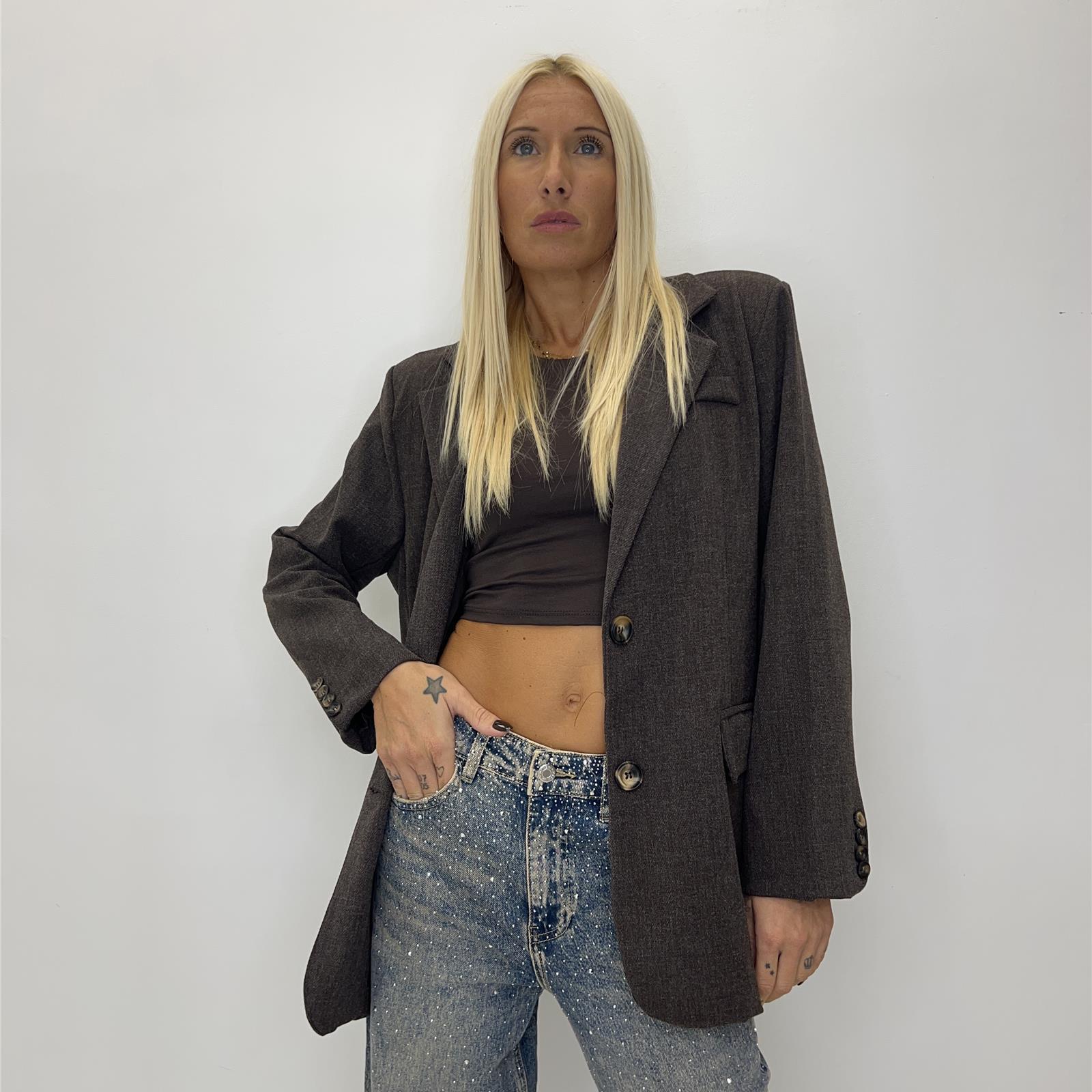 Giacca foderata , con spallino imbottito e bottone di chiusura