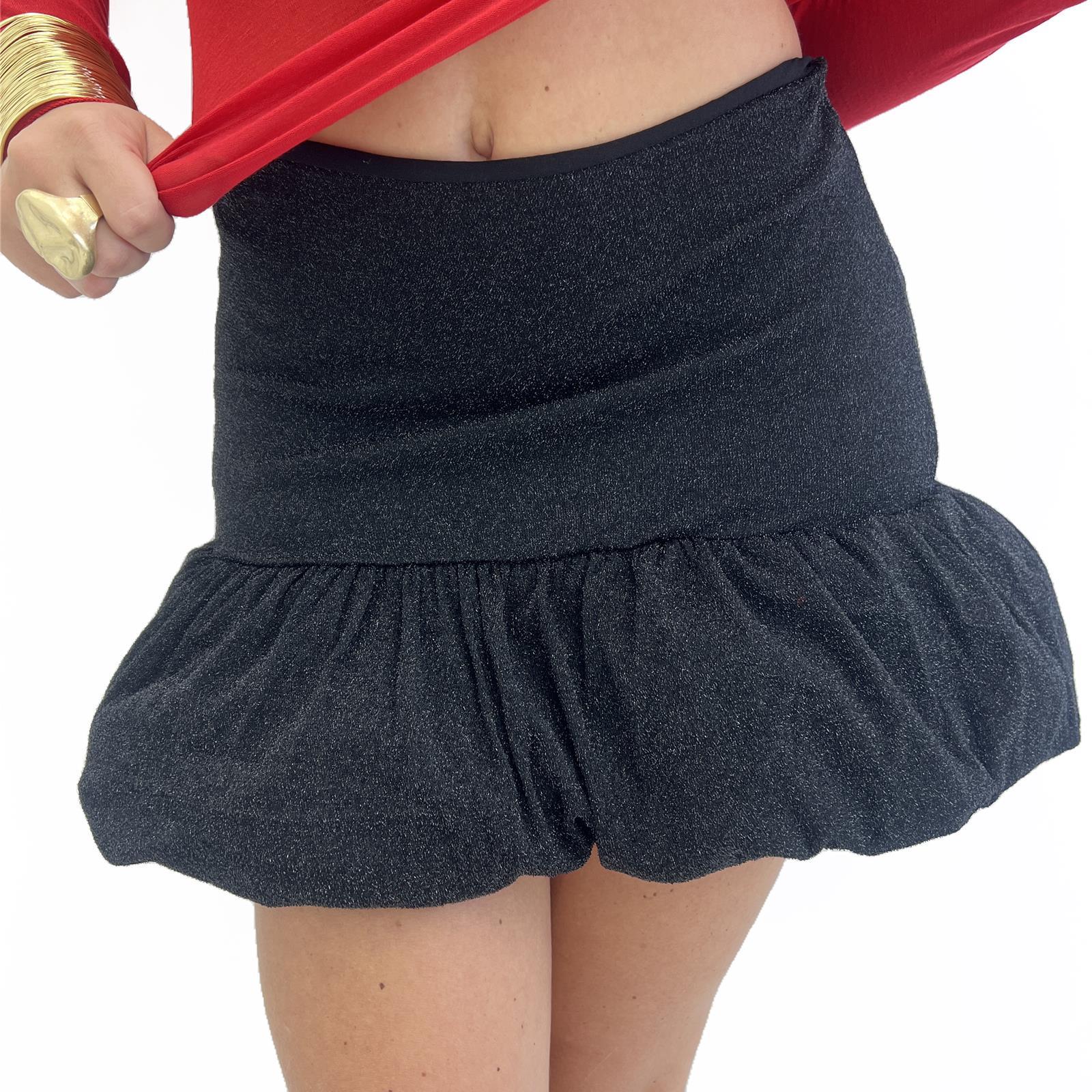Gonna in lurex con balza ampia e arriccita, che crea un effetto bombato e pantaloncino sotto