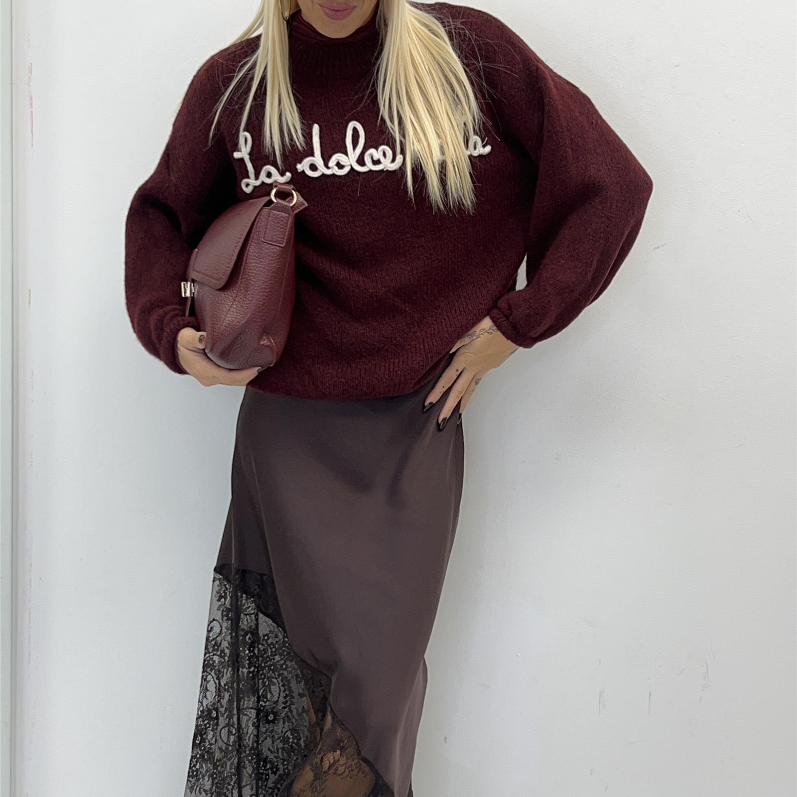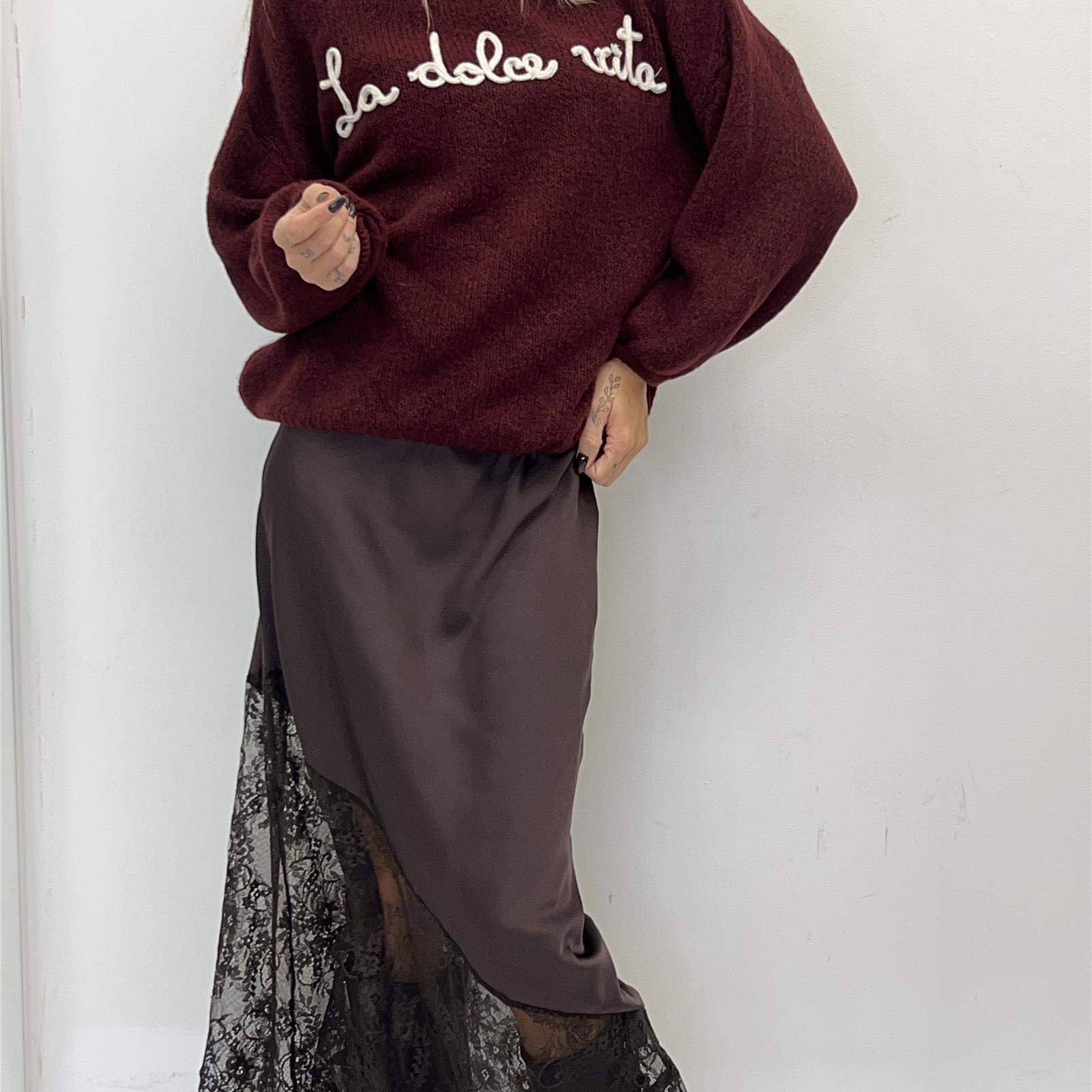 Gonna con elastico in vita effetto raso dettagli in pizzo che creano asimmetria laterale