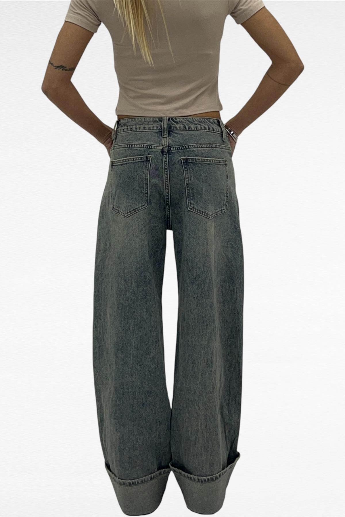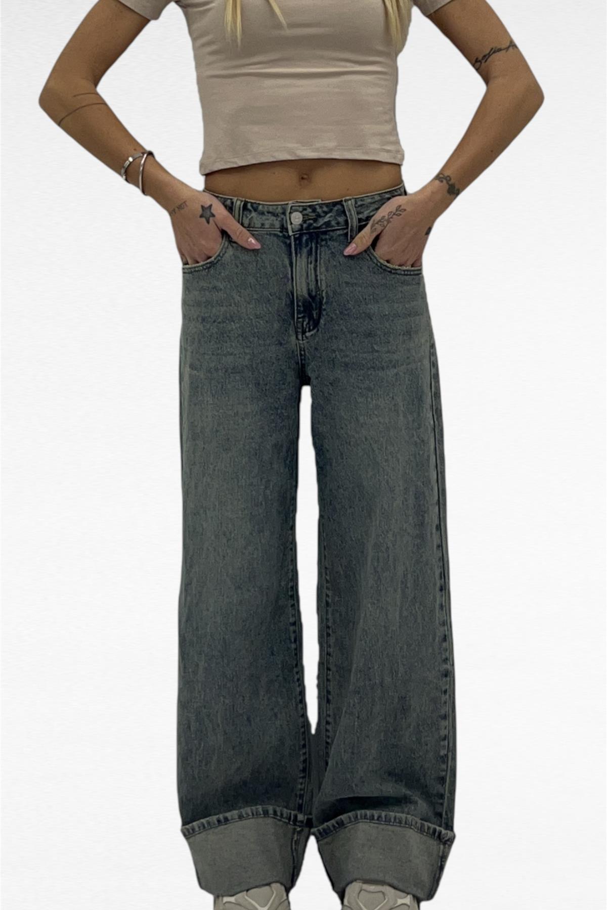 JEANS ELASTICIZZATO MODELLO WIDE LEG CON RISVOLTO