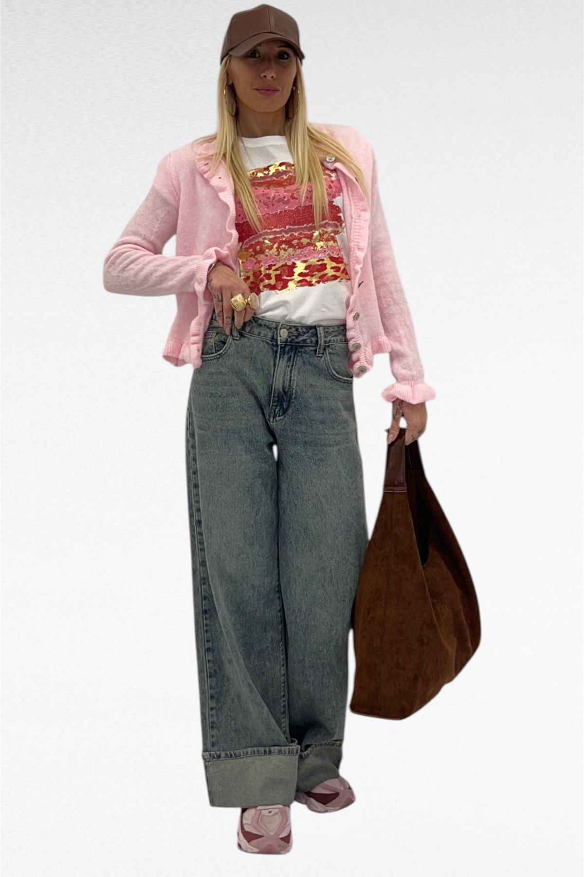 JEANS ELASTICIZZATO MODELLO WIDE LEG  CON RISVOLTO