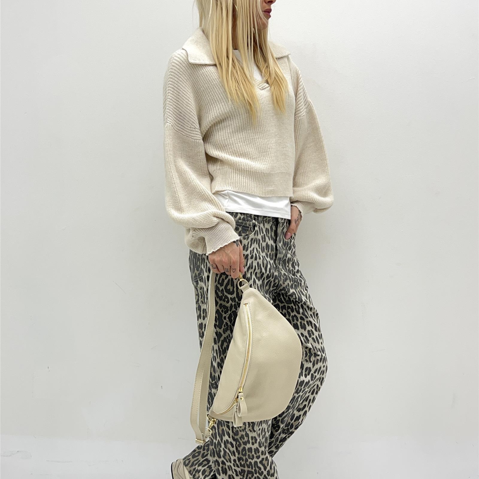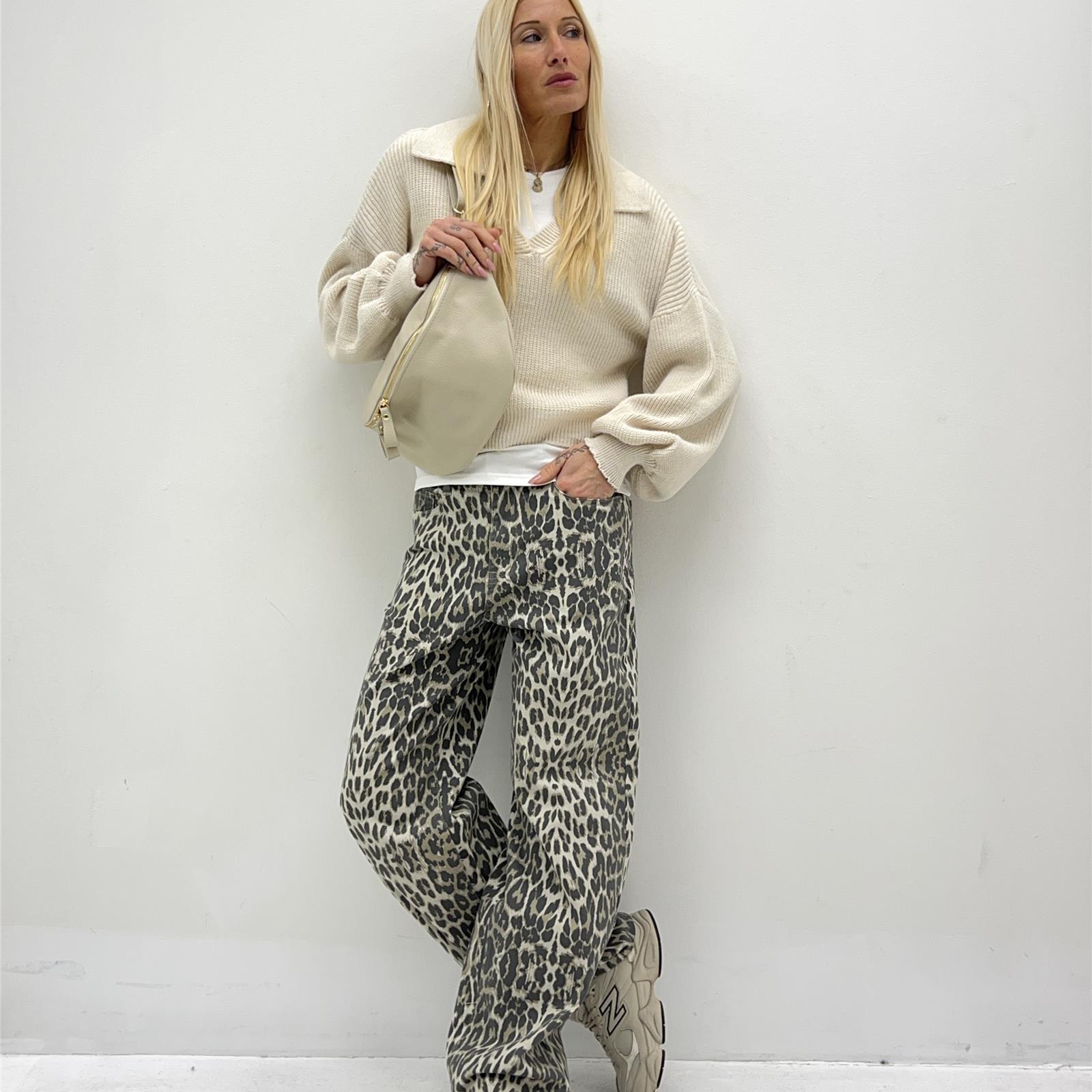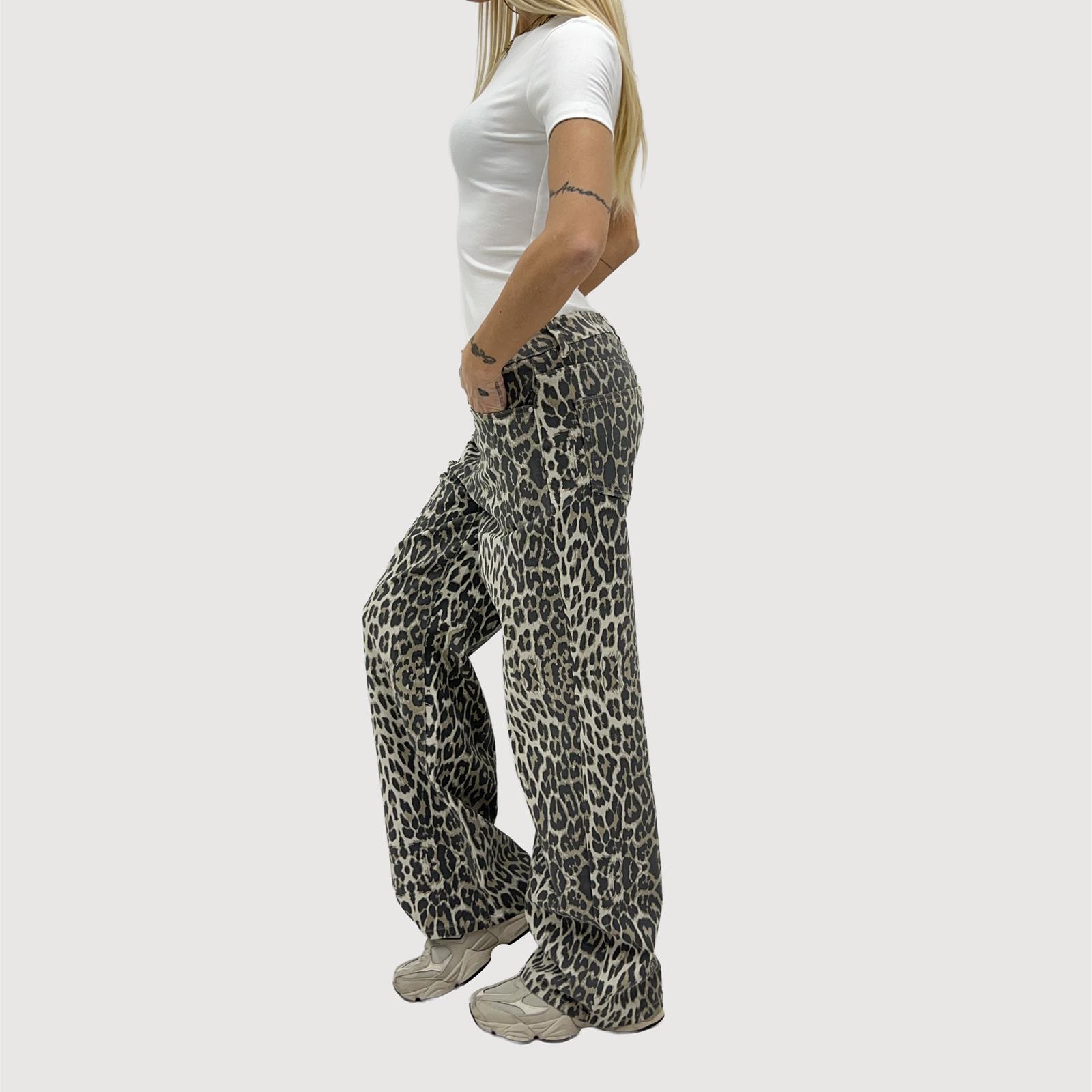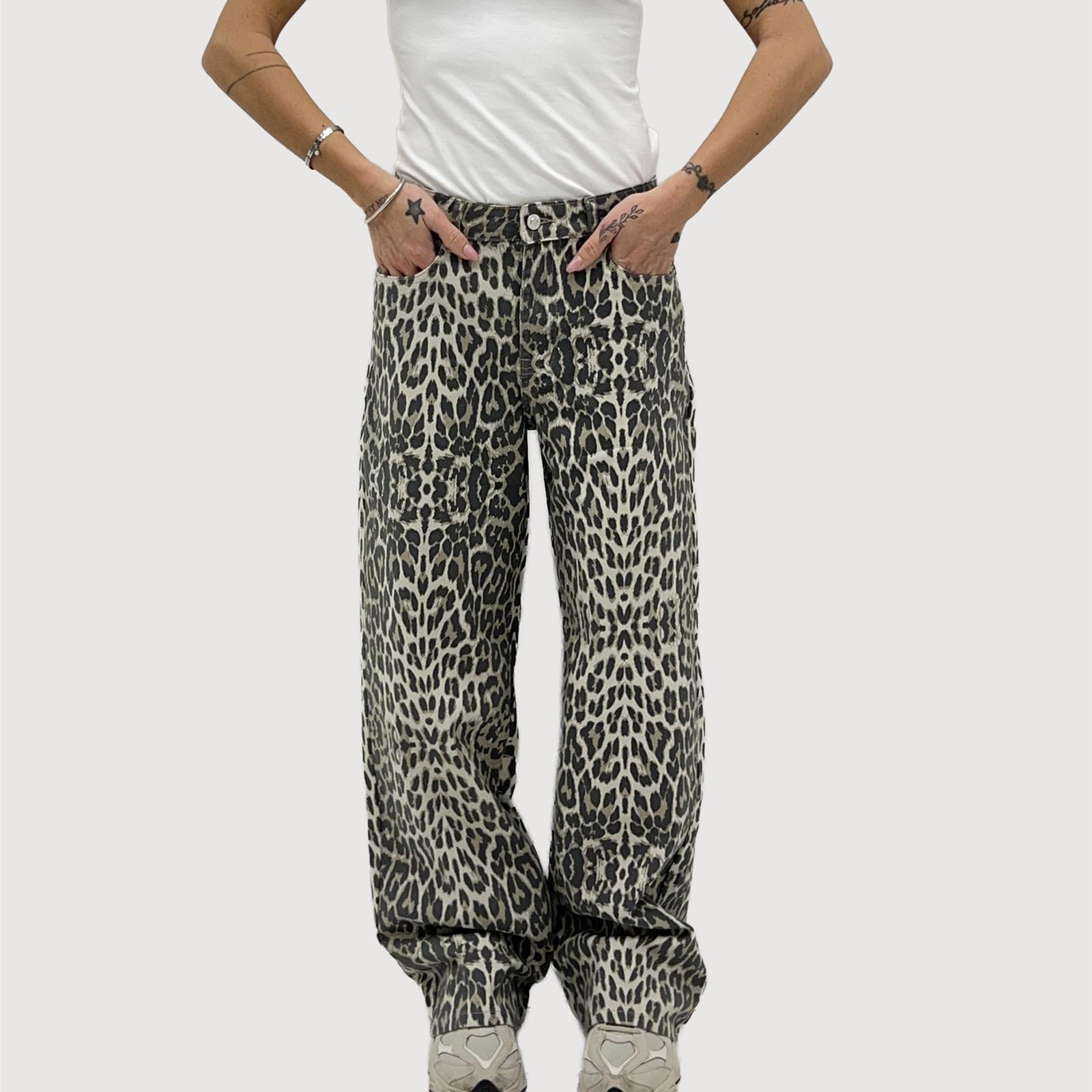 Jeans elasticizzato modelllo wide leg fantasia maculata beige chiaro vita media