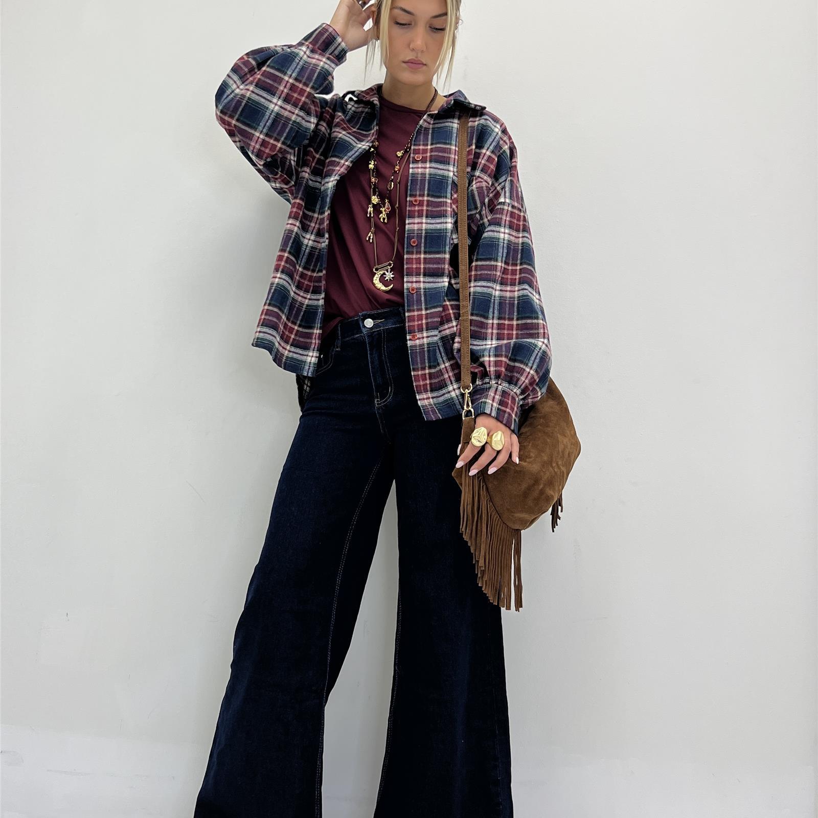 Jeans leggermente elasticizzato modello palazzo taglio vivo sul fondo vita media