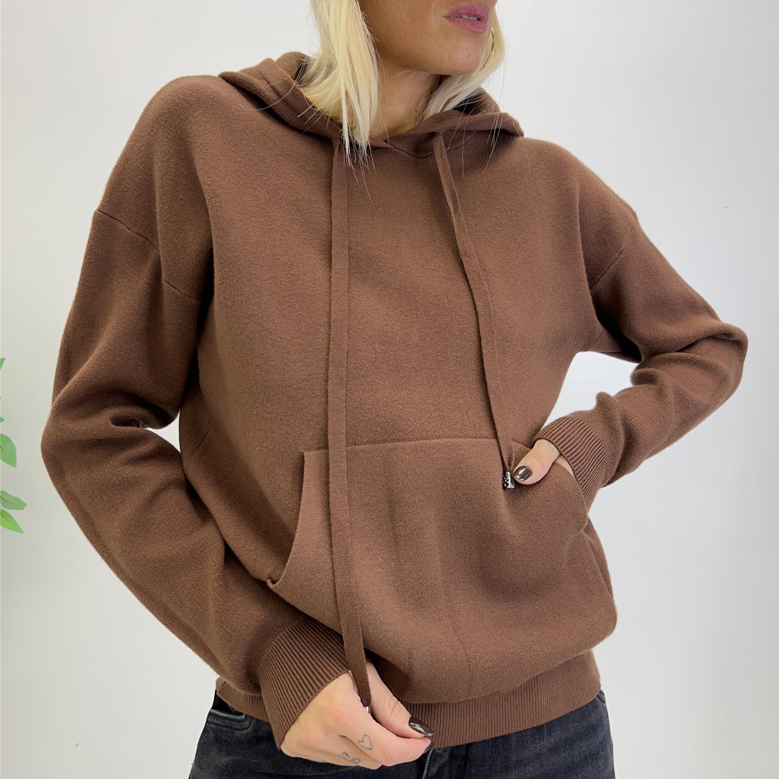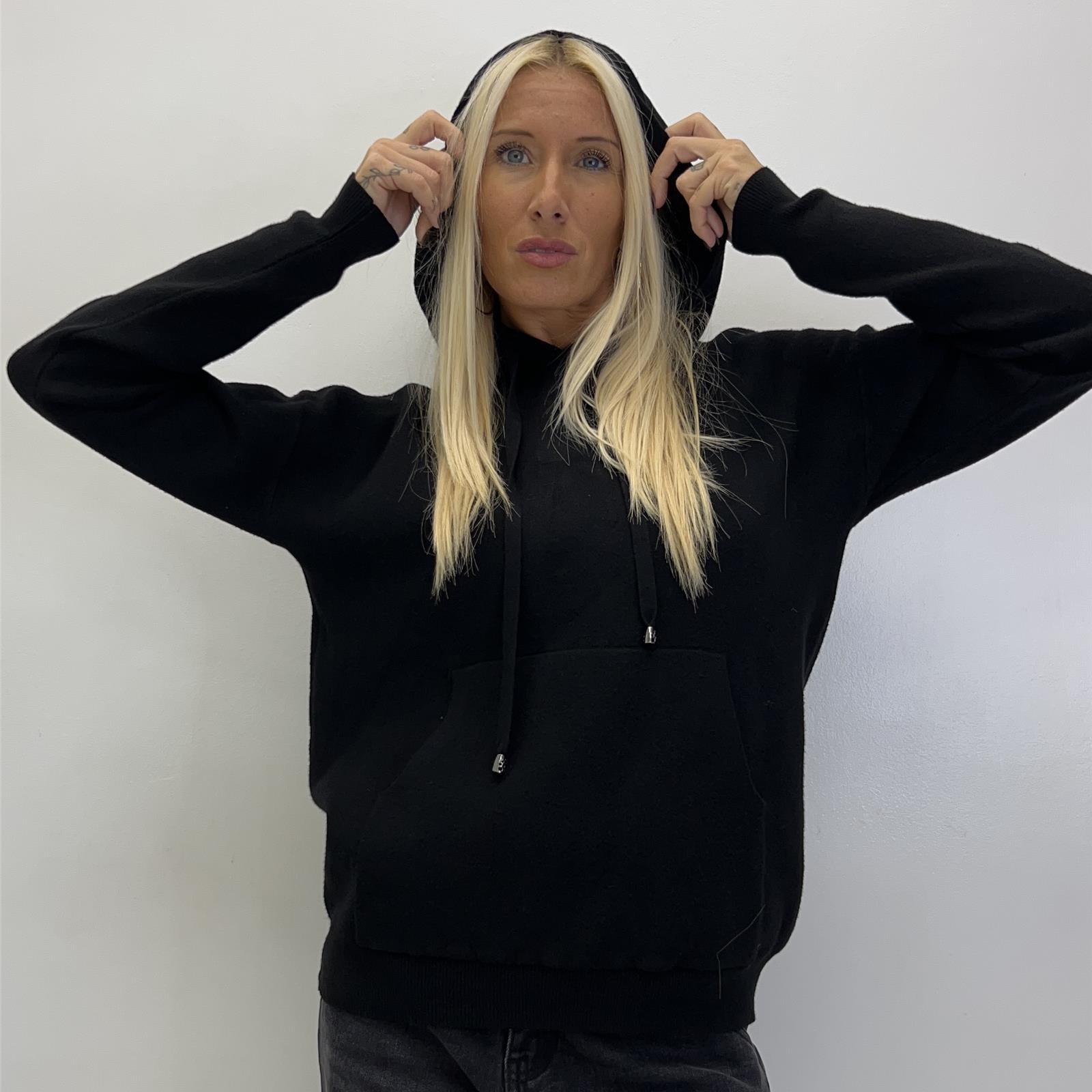 Felpa con cappuccio, senza zip e tasca frontale
