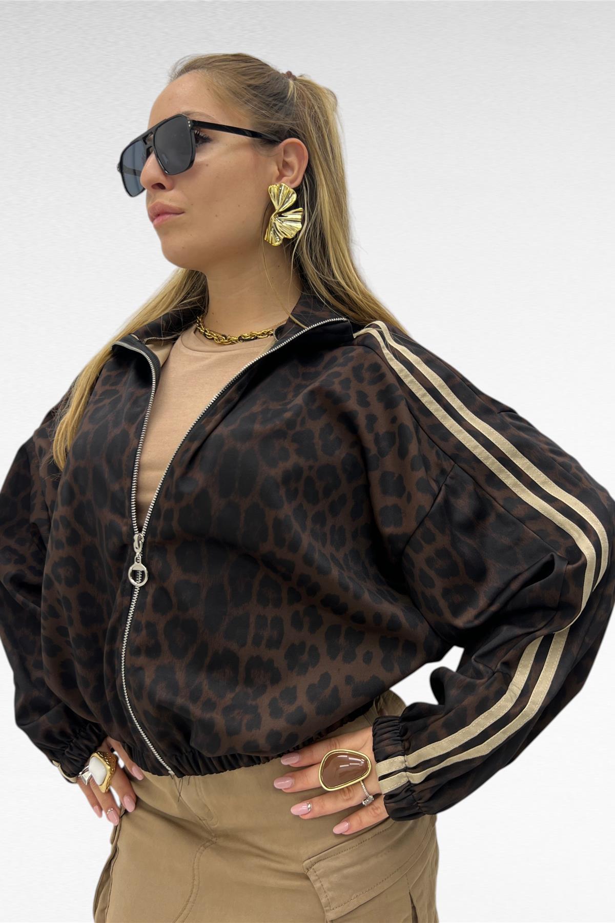 Felpa in tessuto elasticizzato con cerniera di chiusura elastico ai polsi e sul fondo bande laterali sullla manica