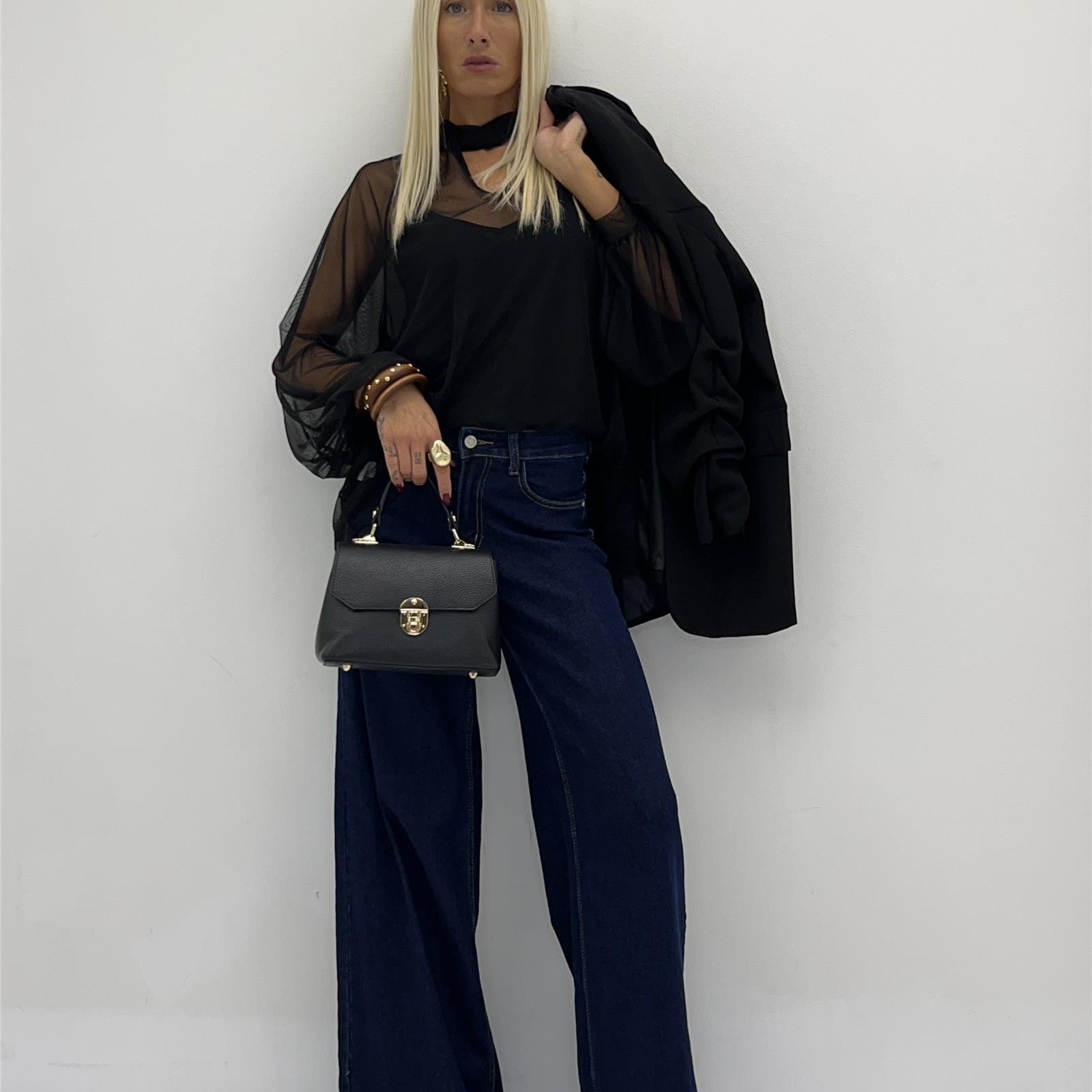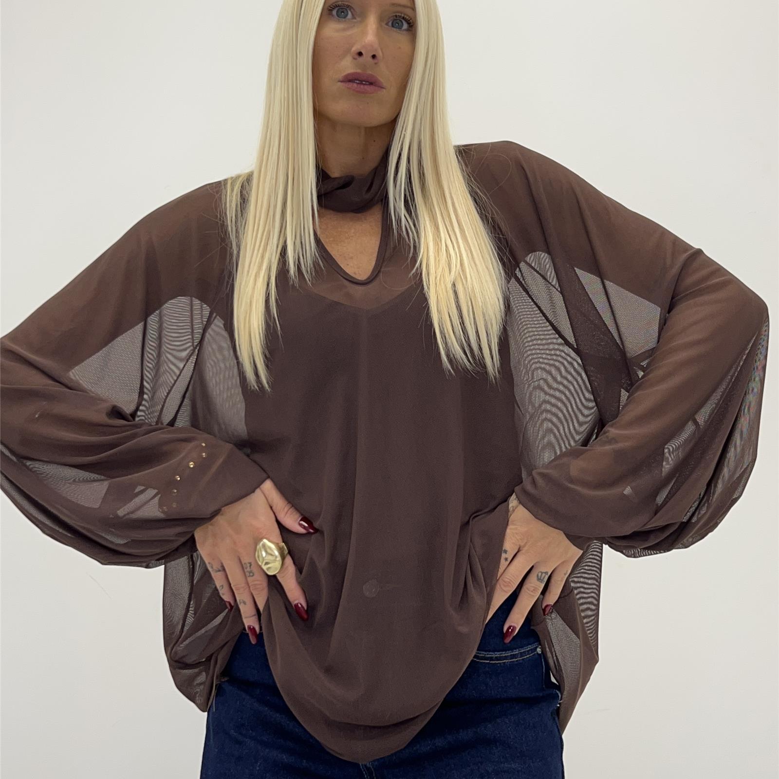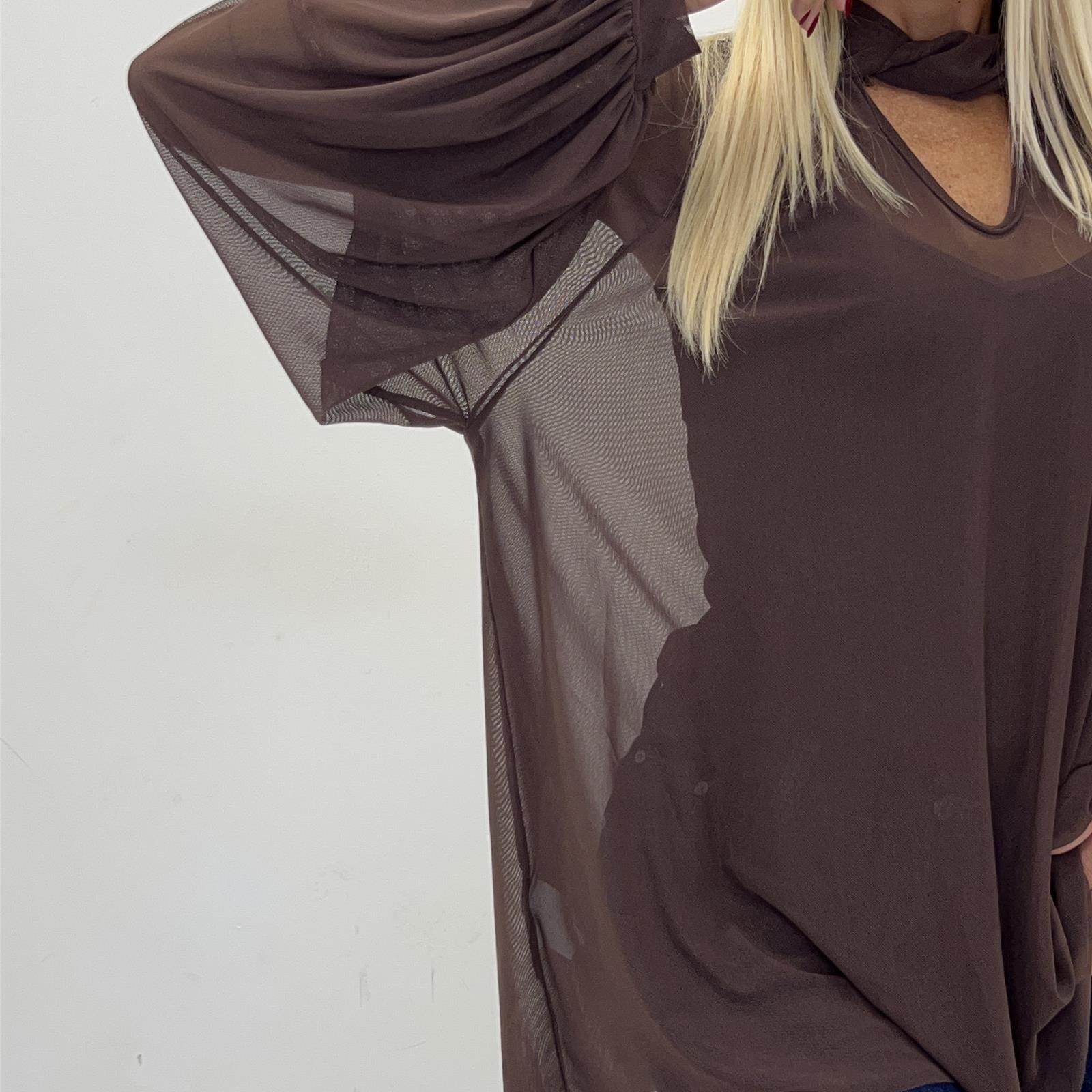 Maglia due pezzi SEPARABILI trasparente con apertura a V sul fronte
