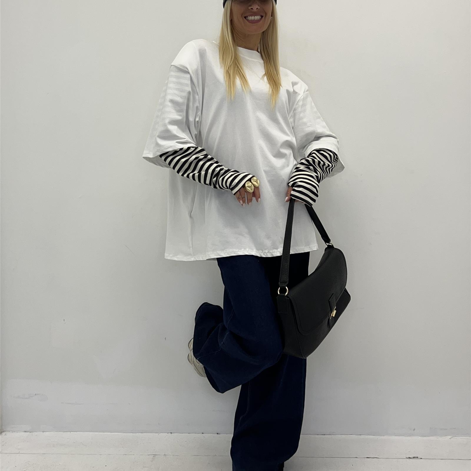 Maglia con spallino imbottito, effetto doppio strato, over, con foro sulla mano