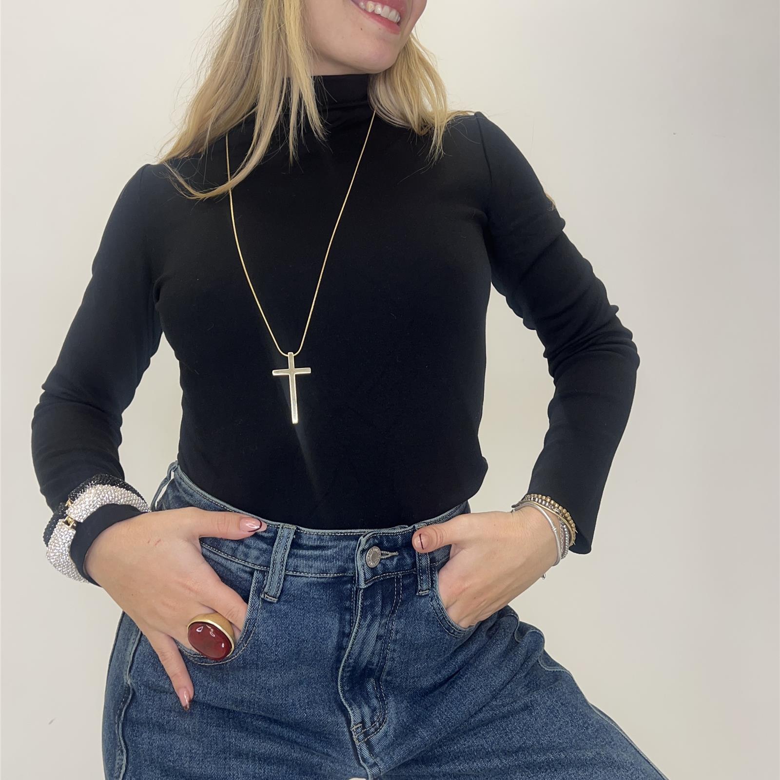 Maglia mezzo collo, manica lunga , felpata all'interno