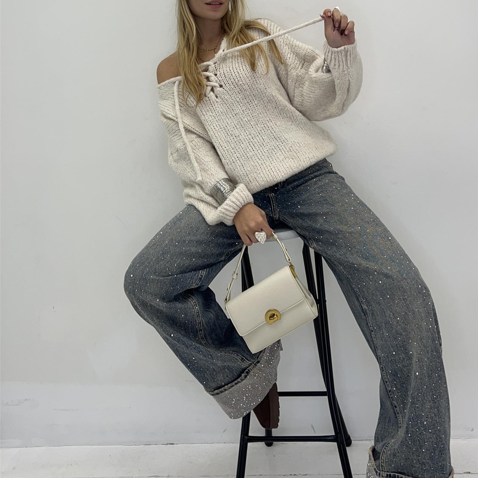 Maglione con laccio sul davanti, caldo e morbido sulla pelle