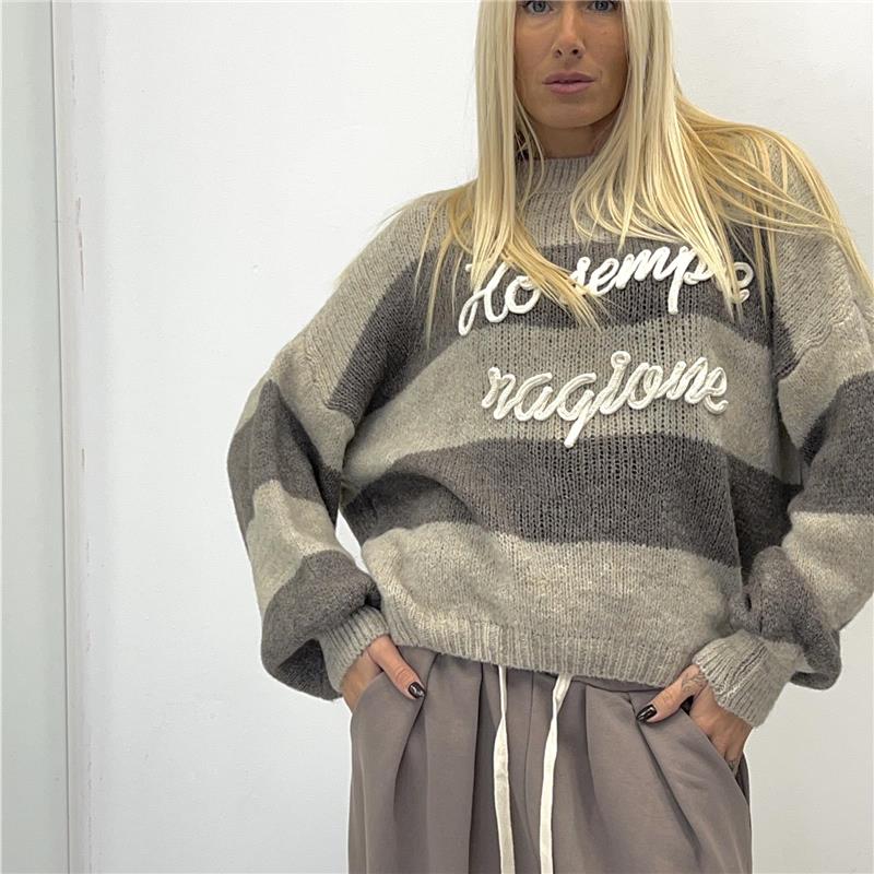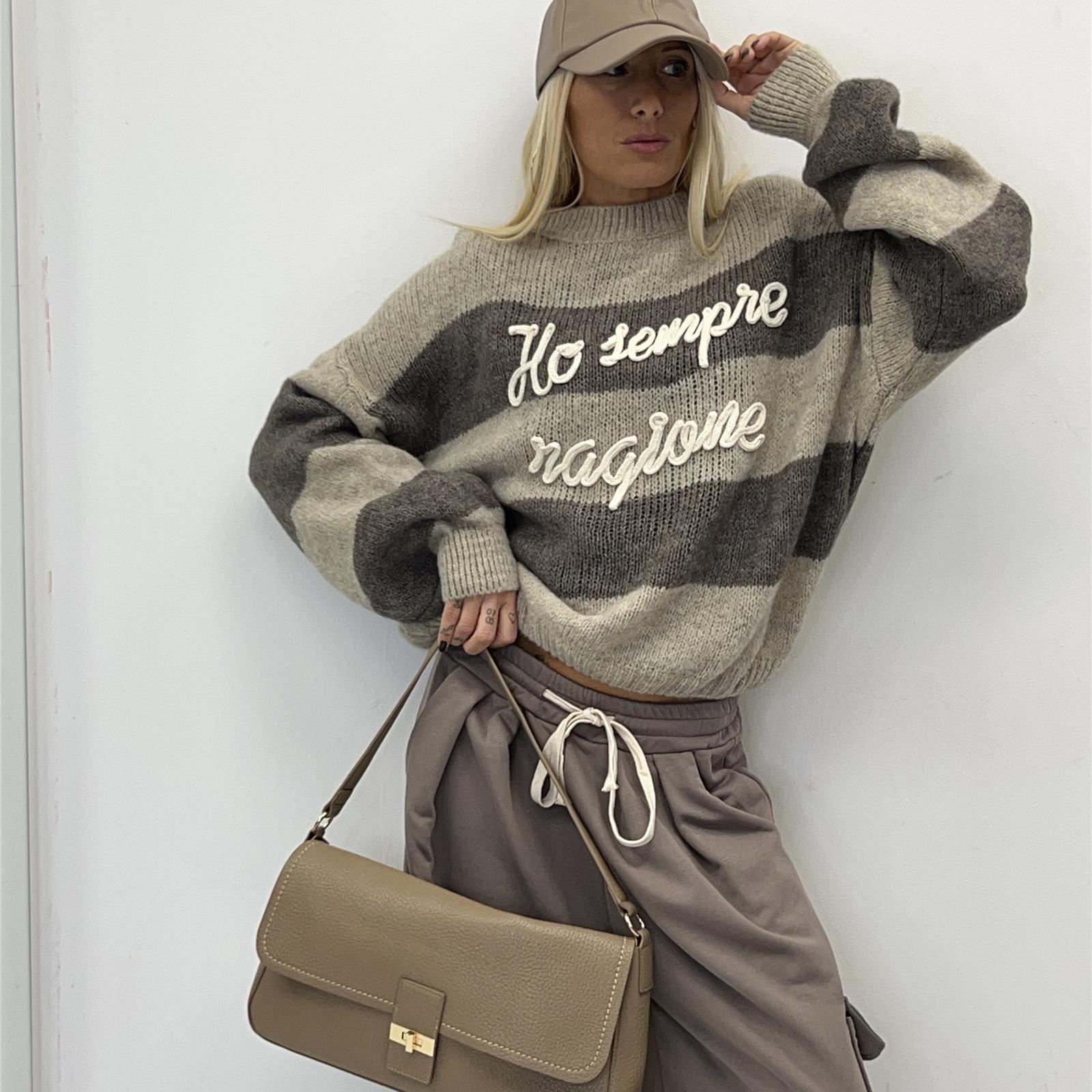 Maglione elasticizzato con ricamo in rilievo sul davanti