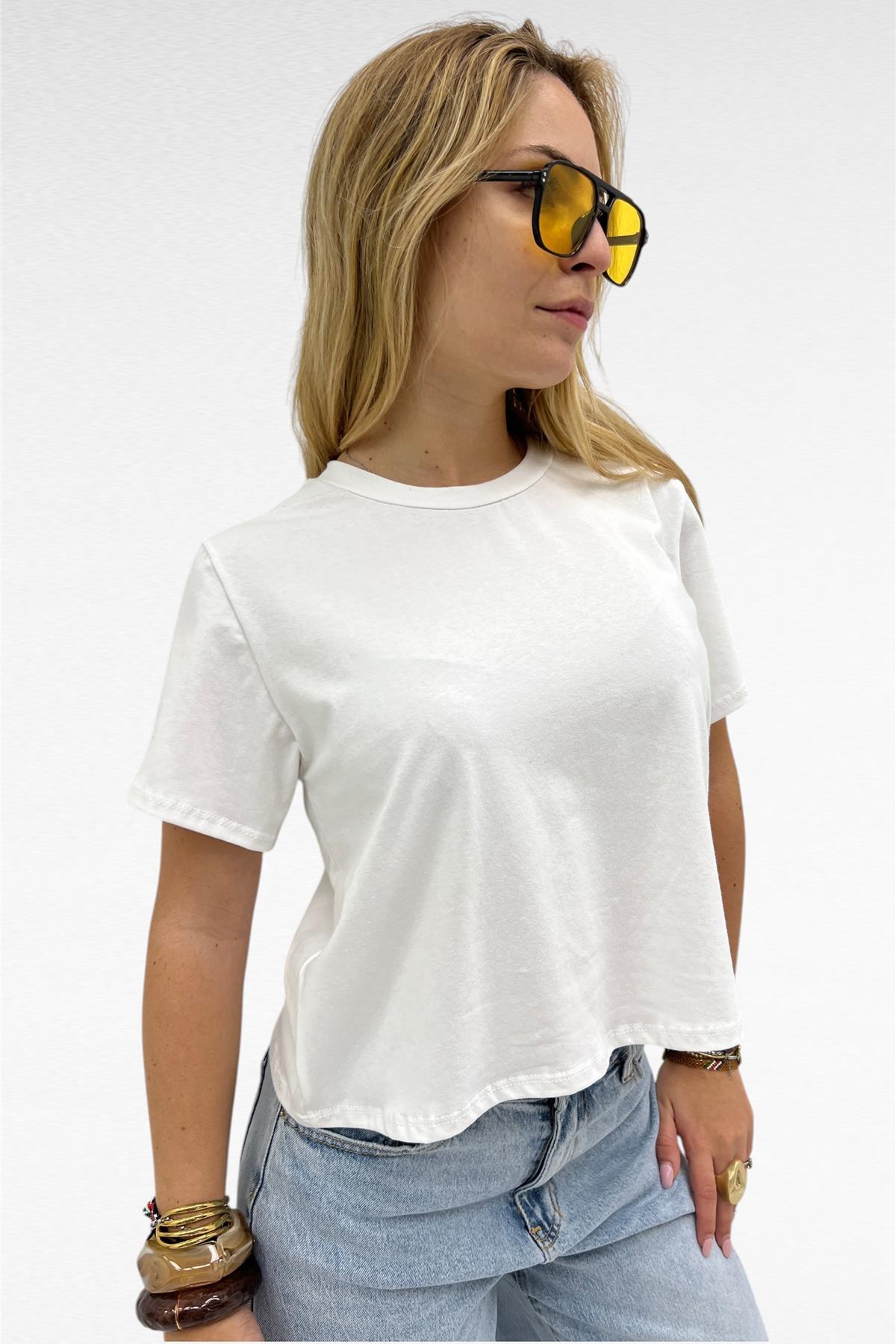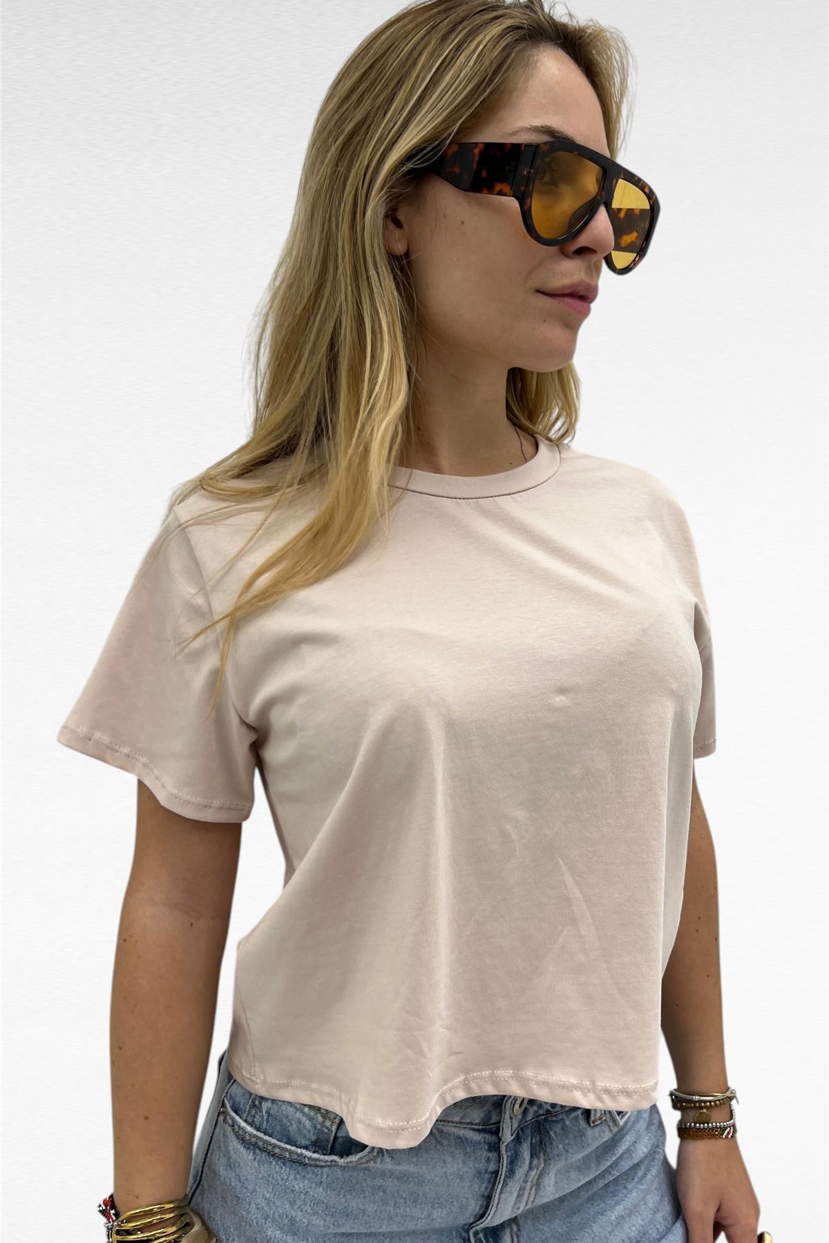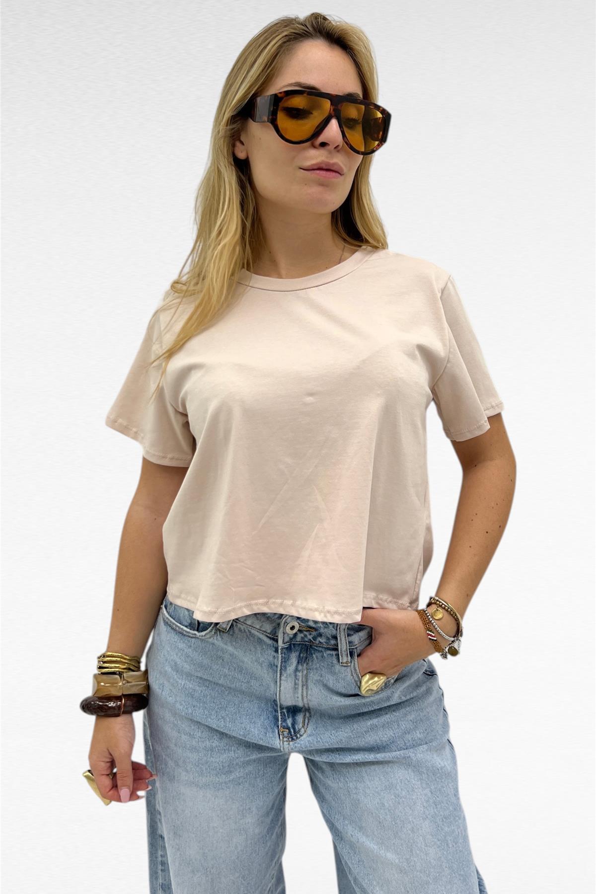 Maglia crop a manica corta, paricollo ed elasticizzata.