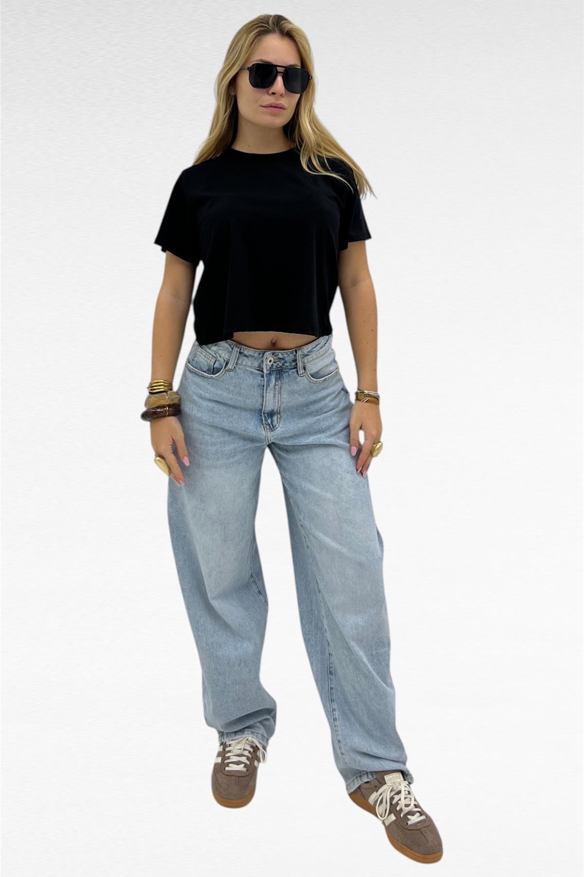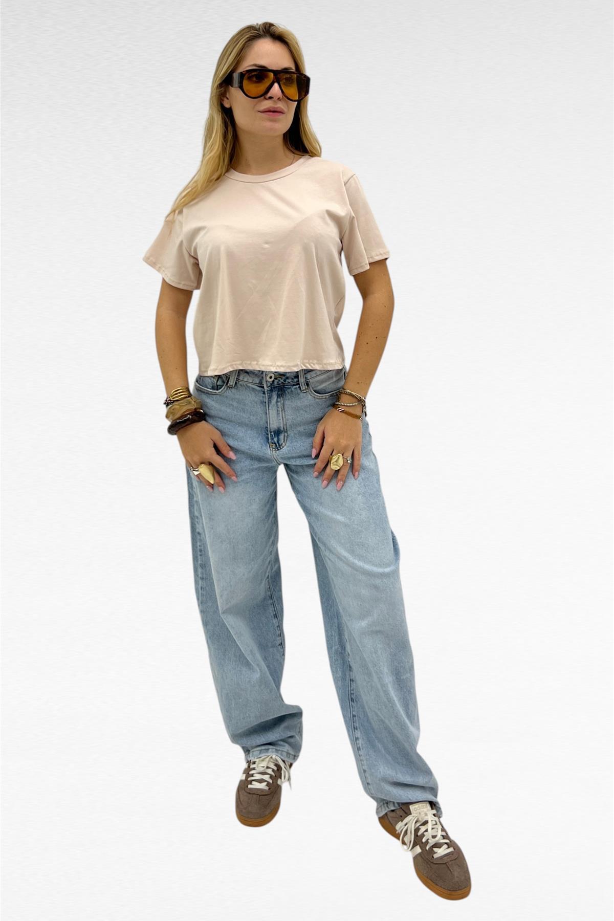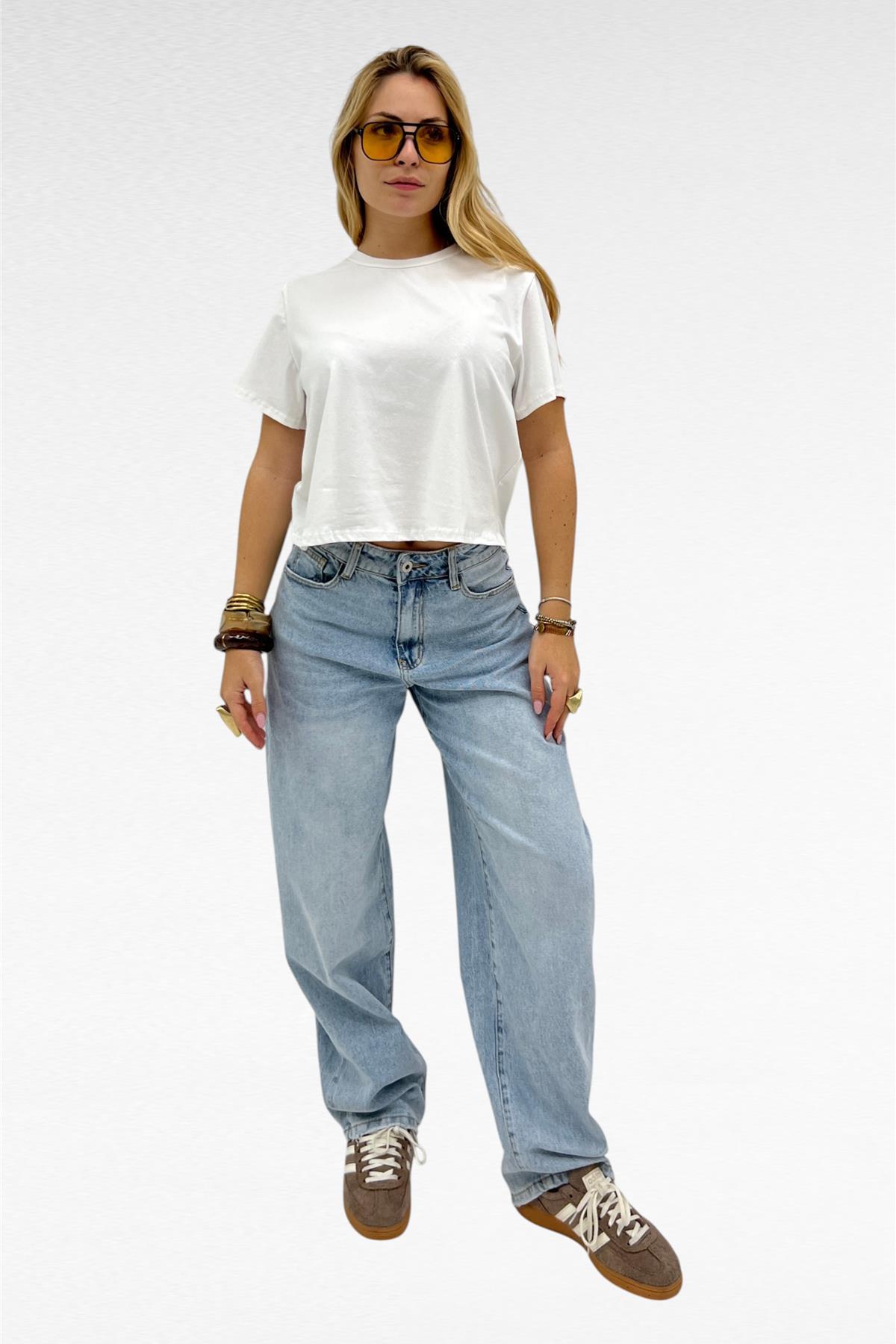 Maglia crop a manica corta, paricollo ed elasticizzata.