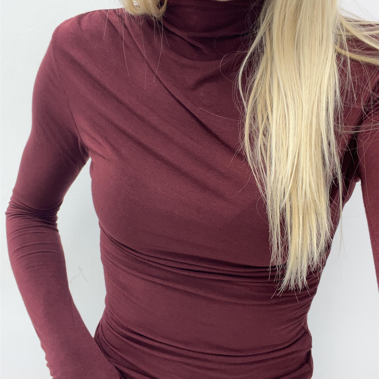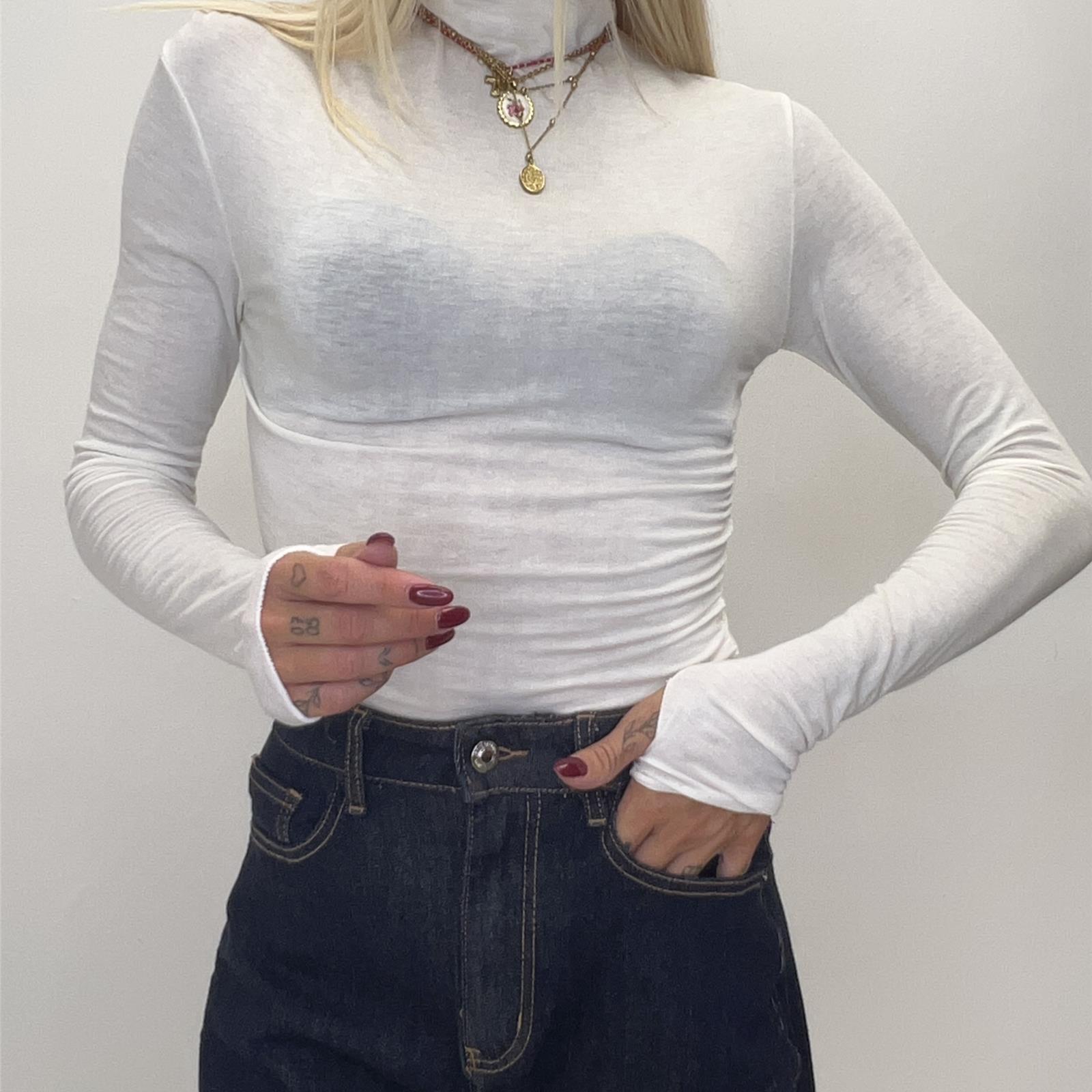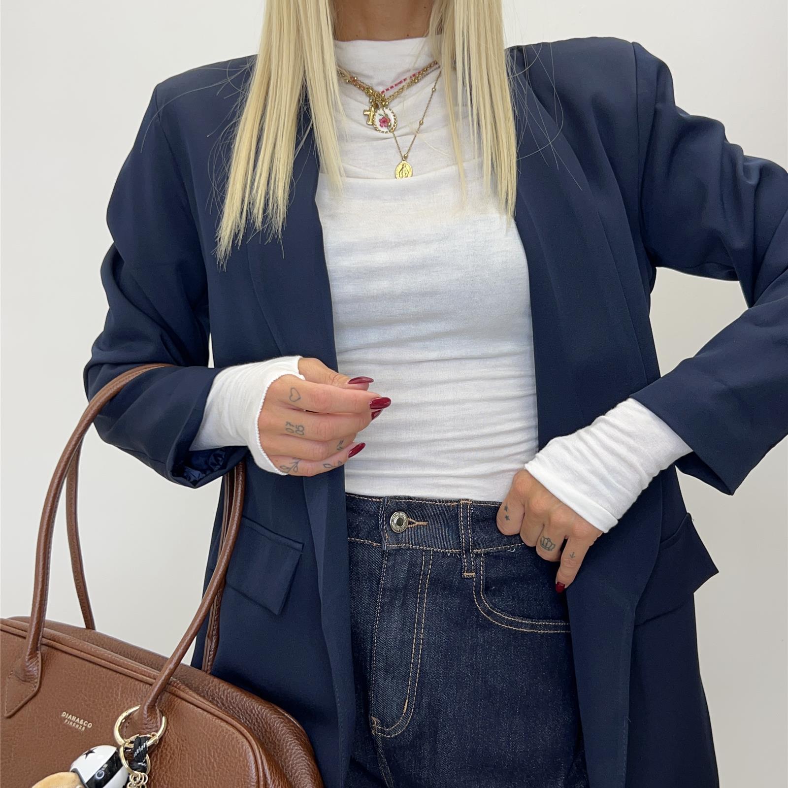 Maglia mezzo collo , elasticizzata con foro sulla manica con arricciattura laterale