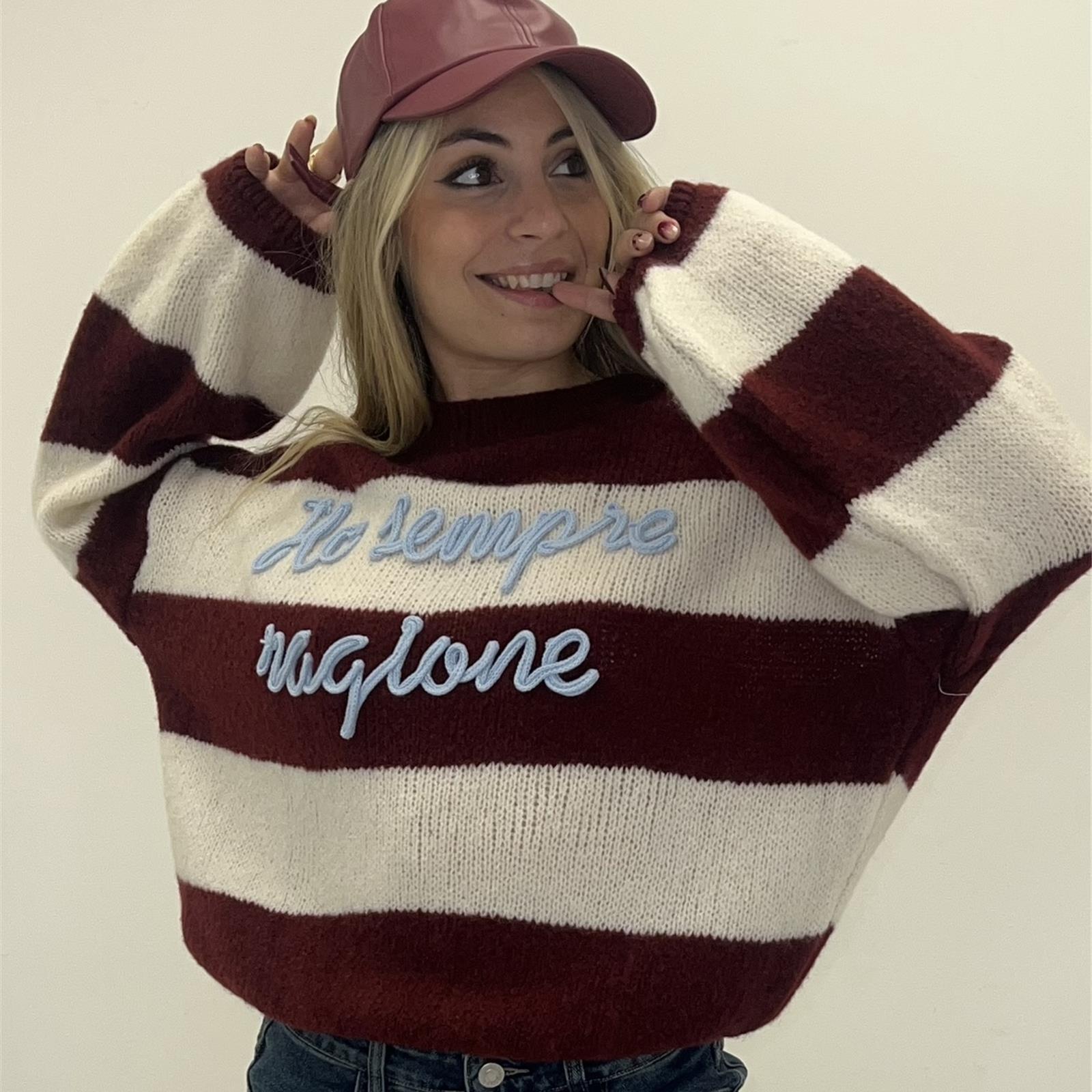 Maglione elasticizzato con ricamo in rilievo sul davanti