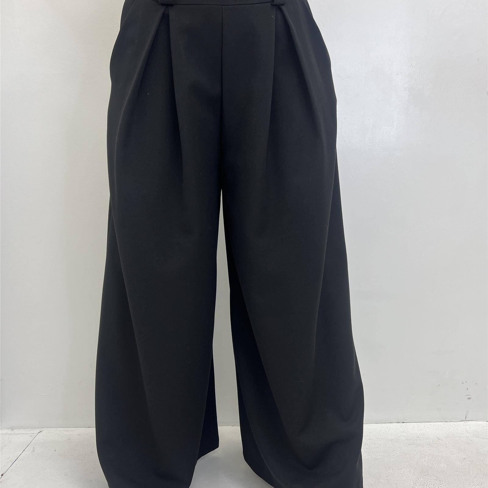 Pantalone molto ampio modello pantagonna con tasche e cintura elastico in vita sul retro bottone di chiusura