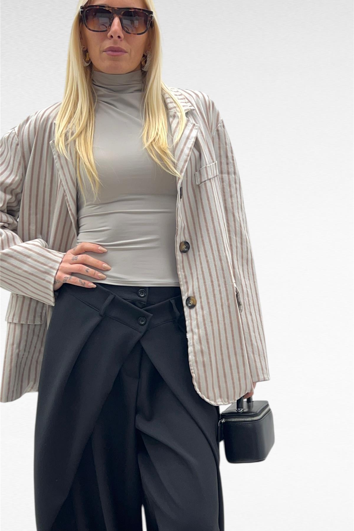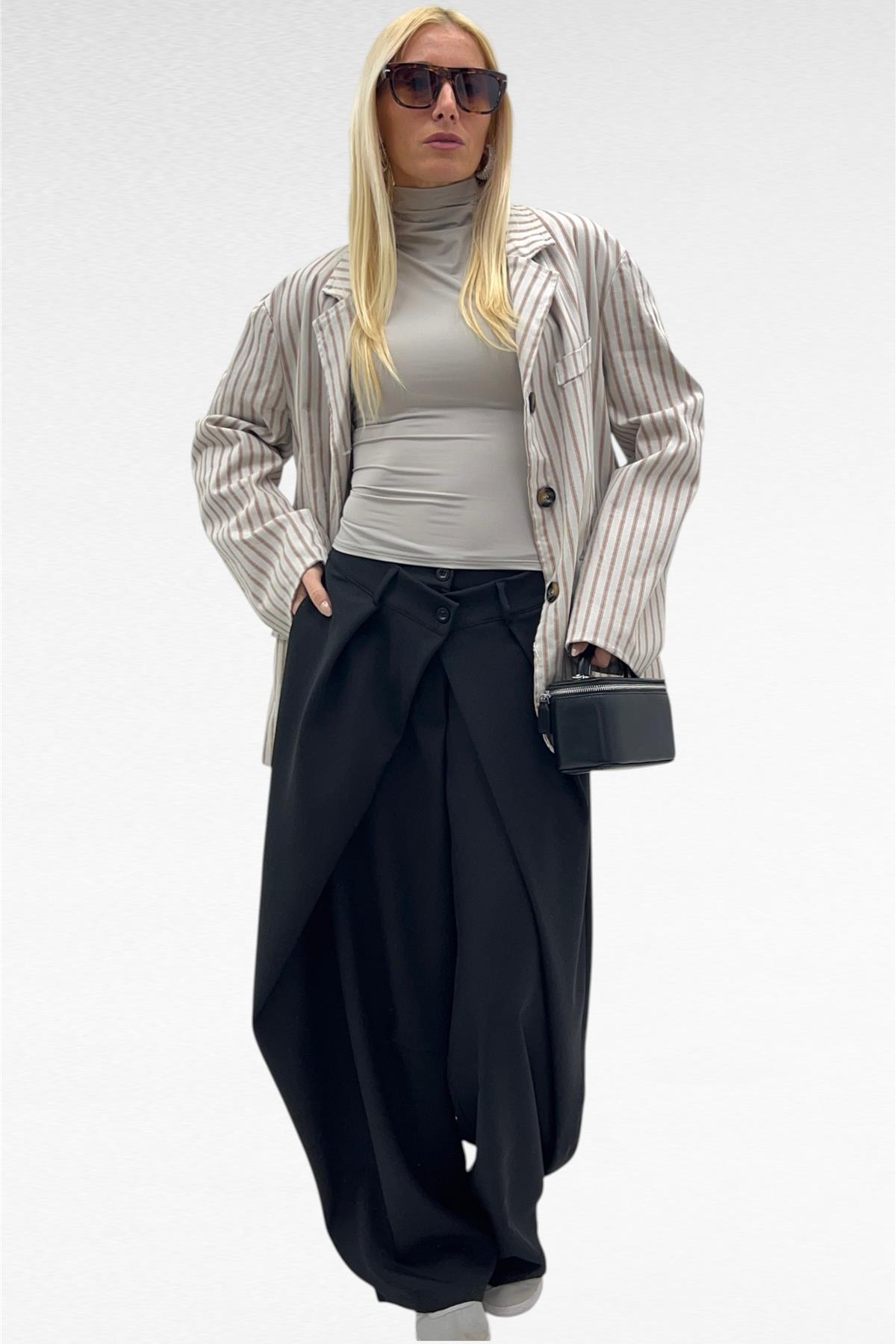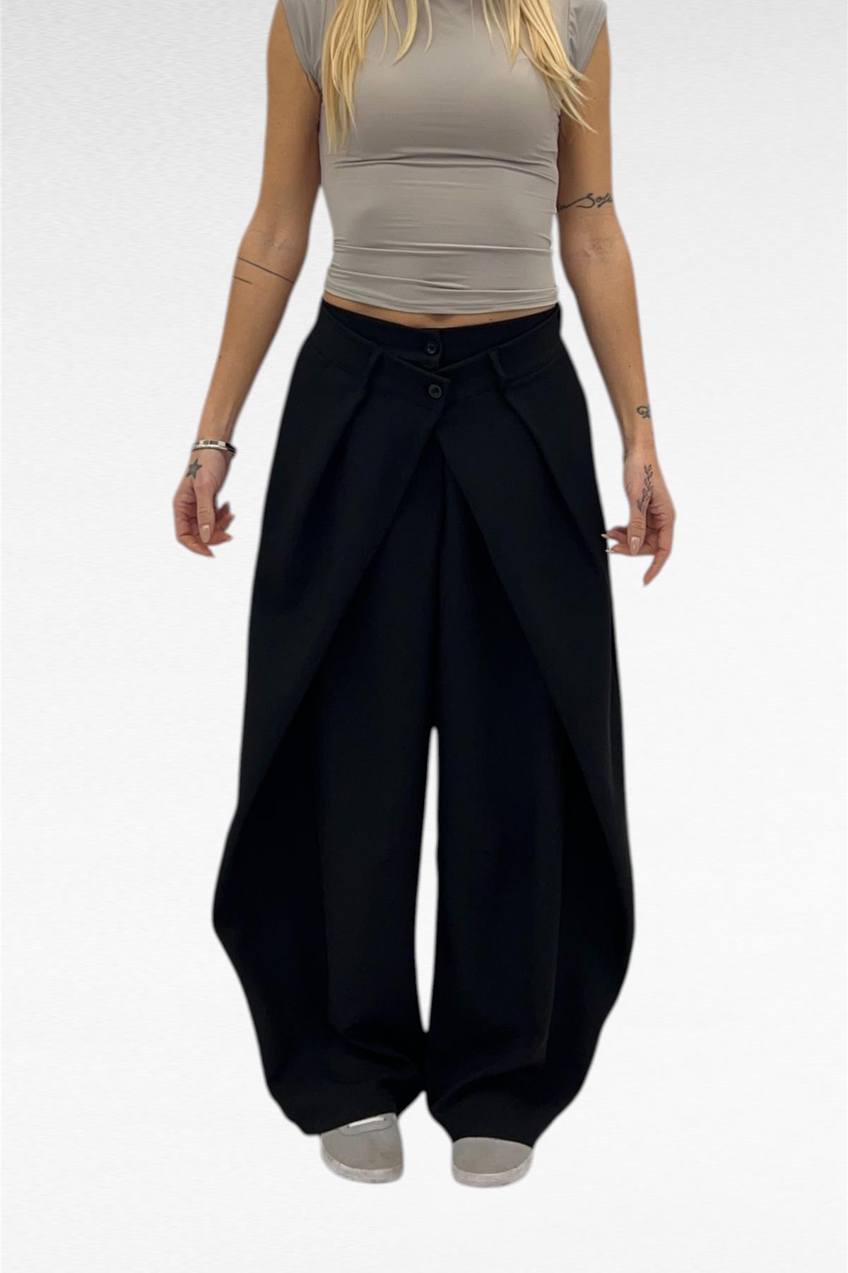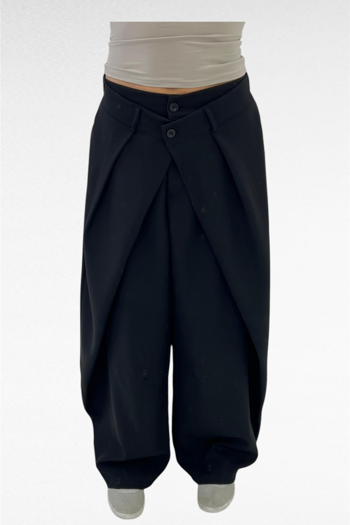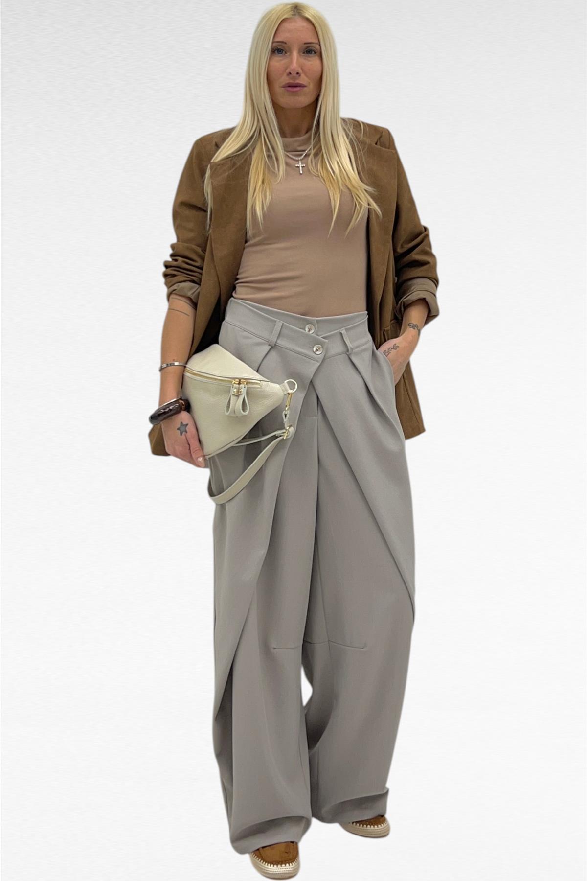 pantalone con chiusura incrociata a doppio bottone cross