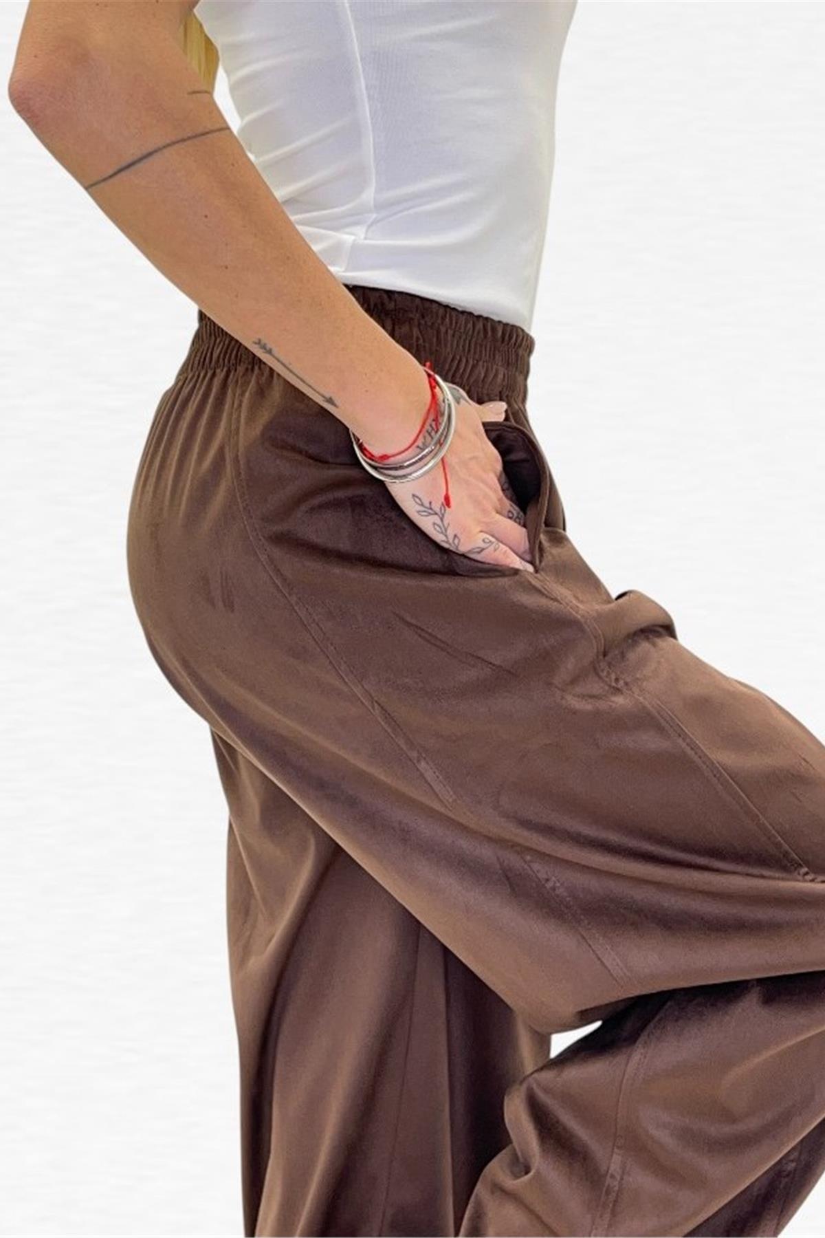 Pantalone in tessuto alcantara con elastico in vita e tasche laterali