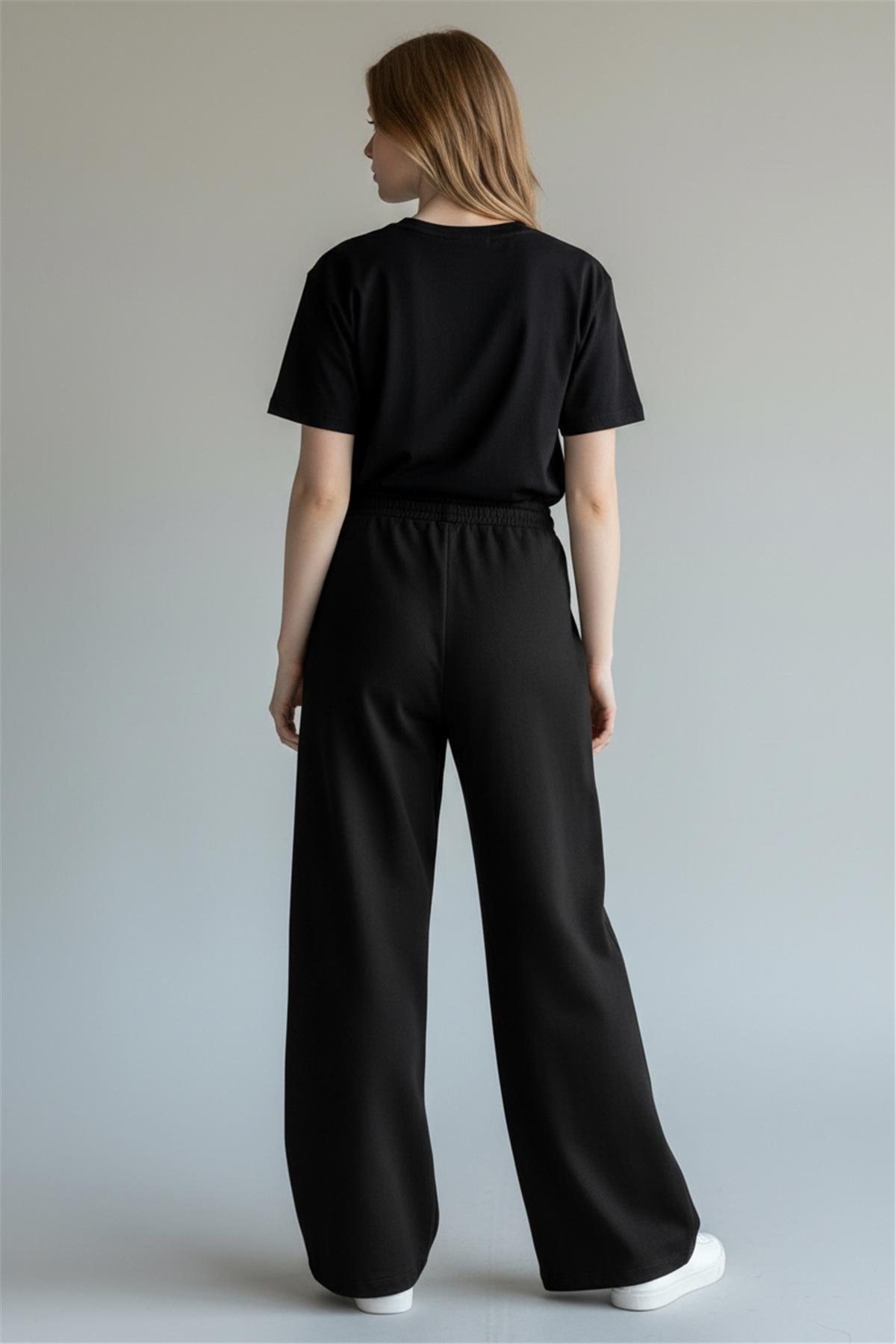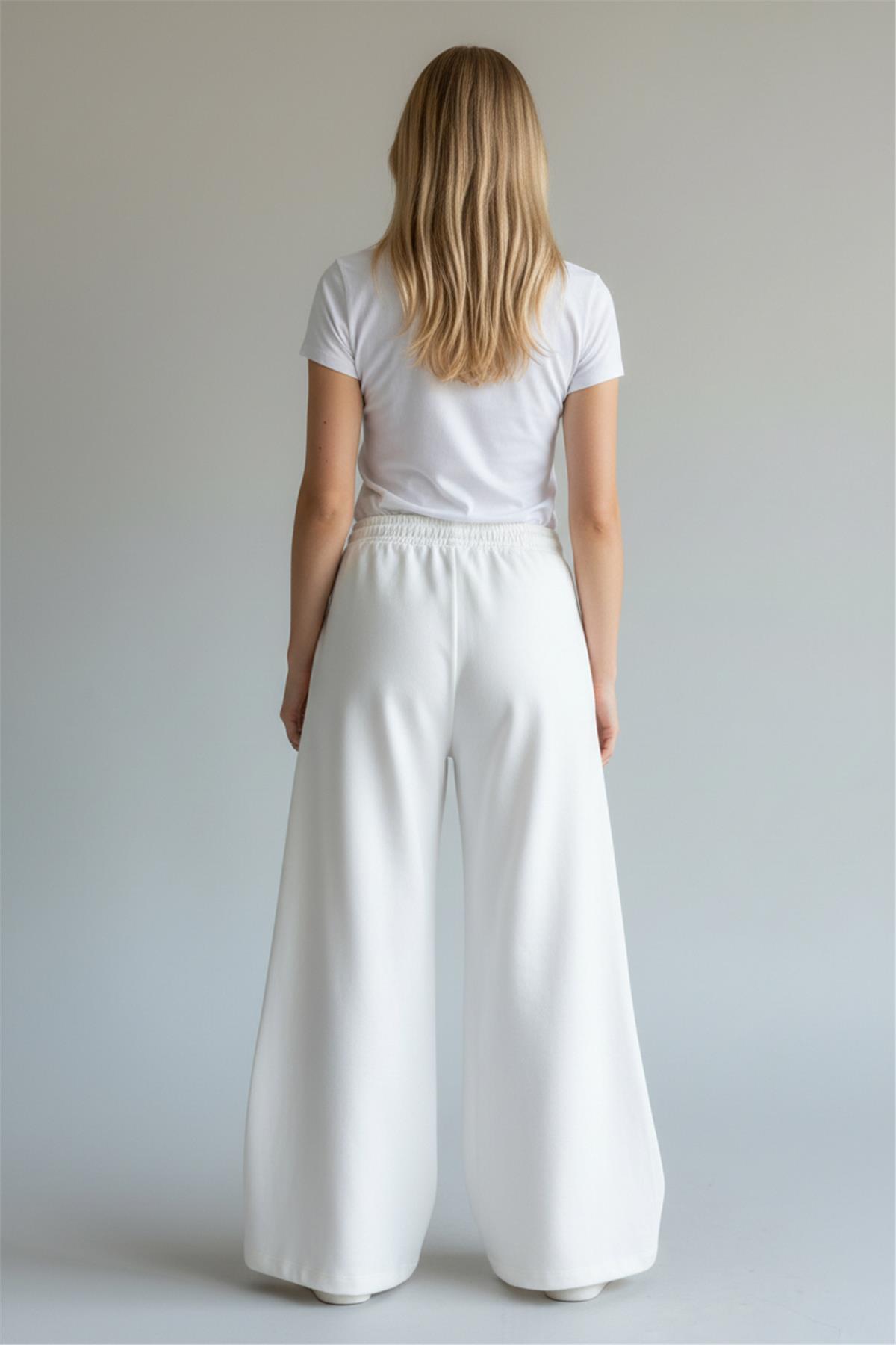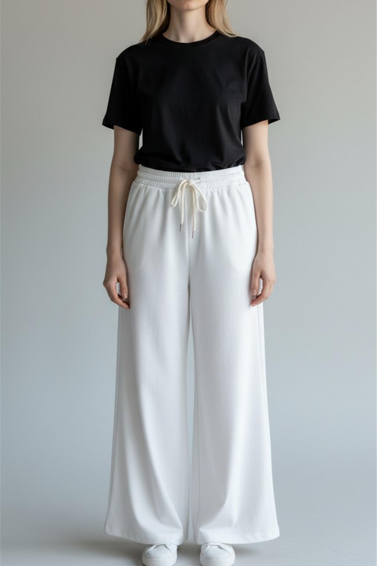 Pantalone modello palazzo , con elastico in vita, laccio regolabile e tasche laterali