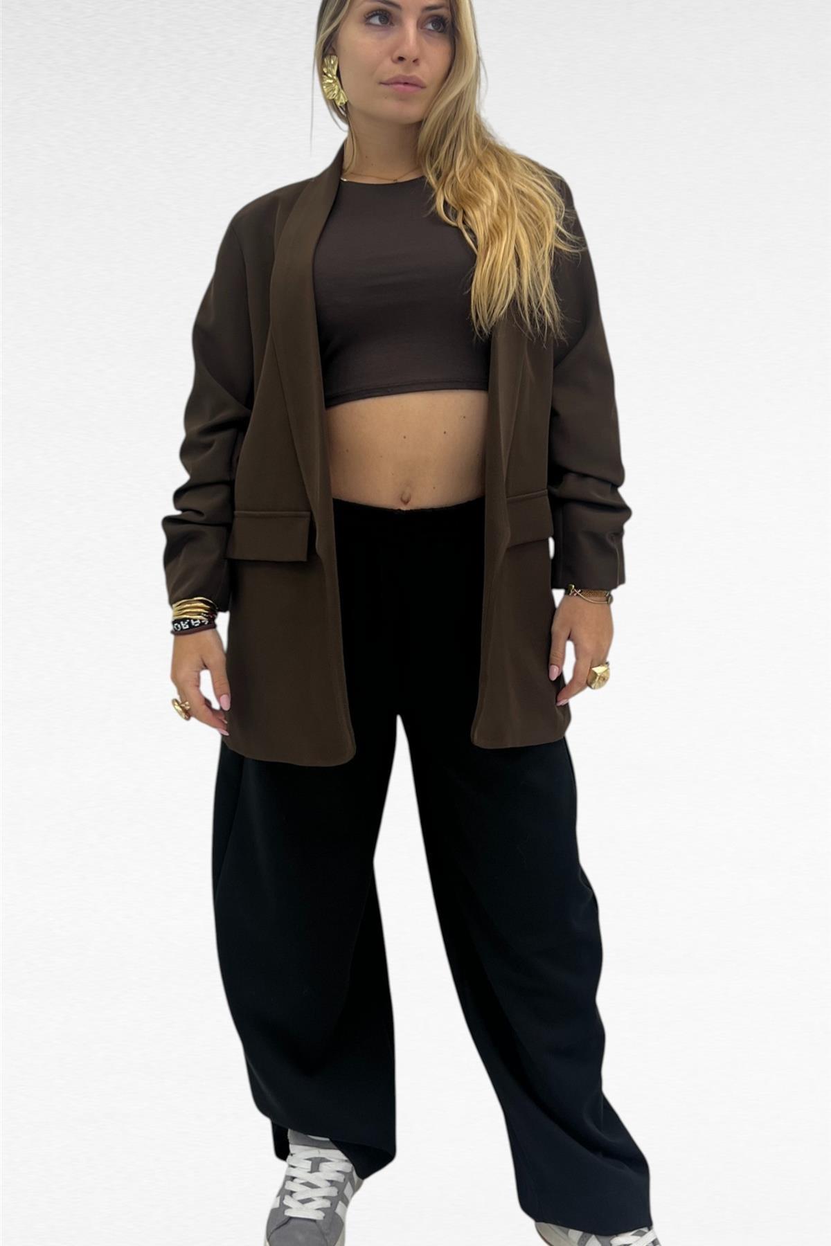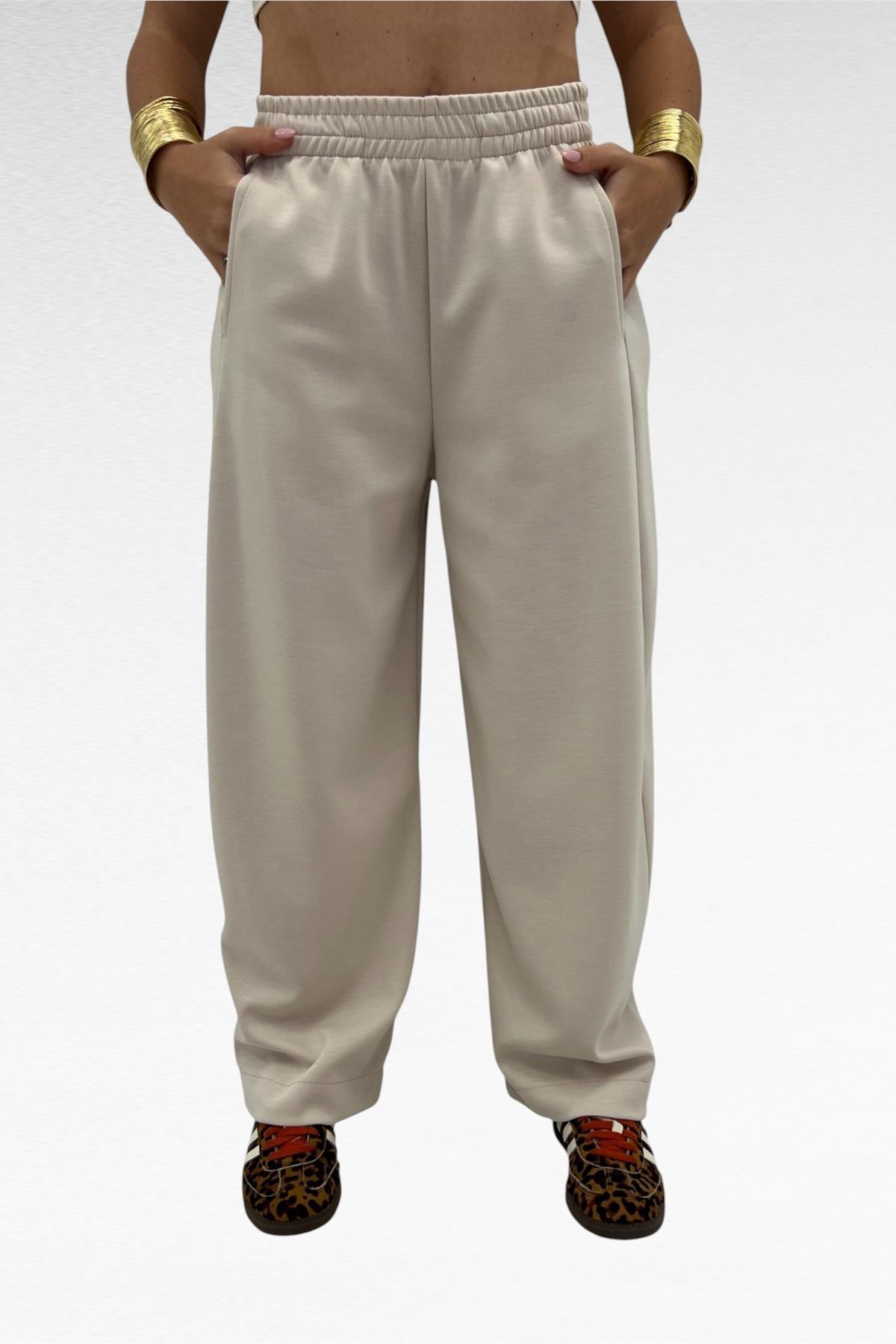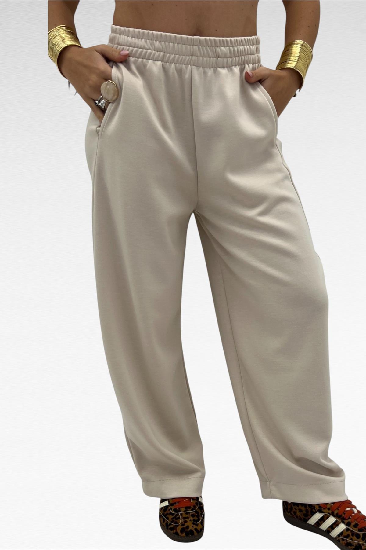 pantalone modello leggermente effetto balloon elastico in vita tasche reali non felpato una tsaca sul retro