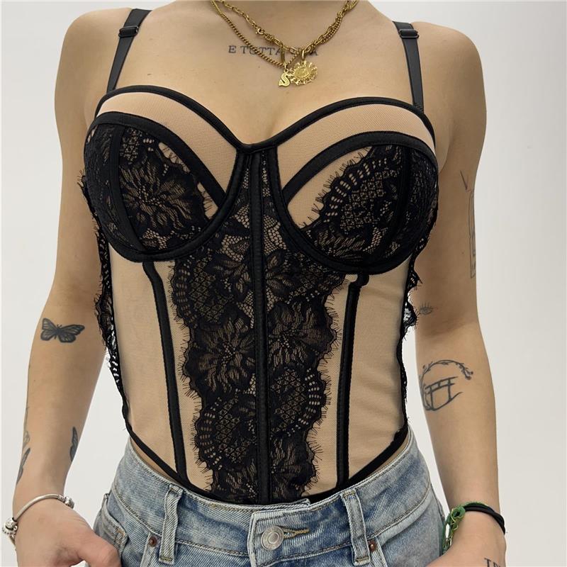 Bustino coppe imbottite spallino regolabile fine con stecche rigide sul davanti ricamato